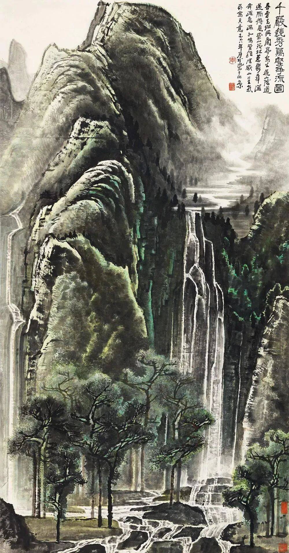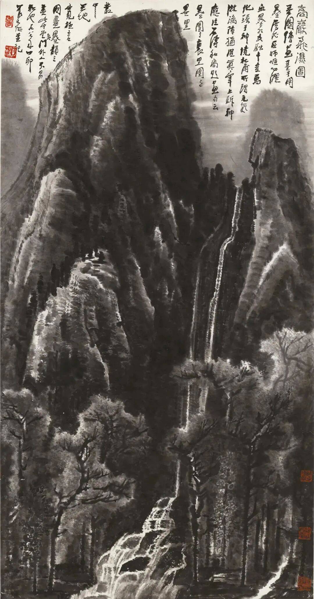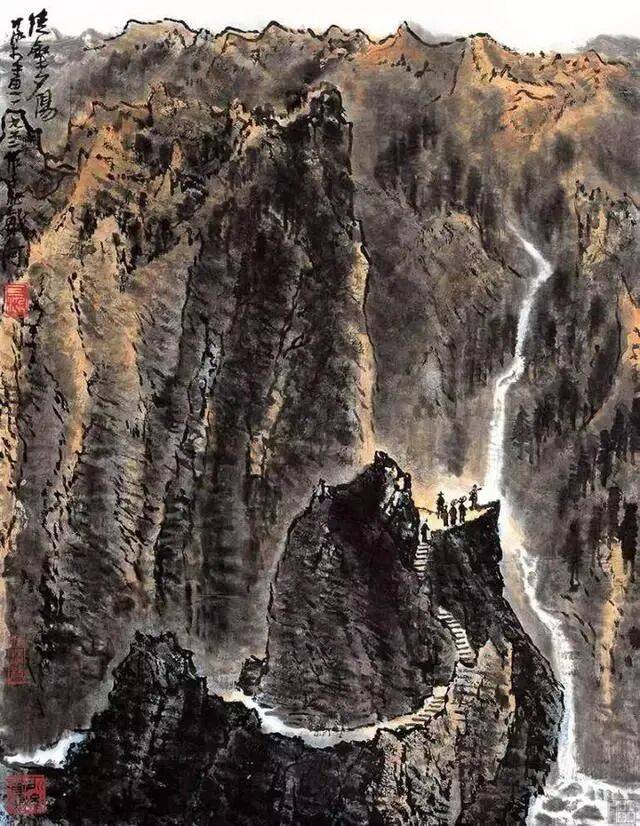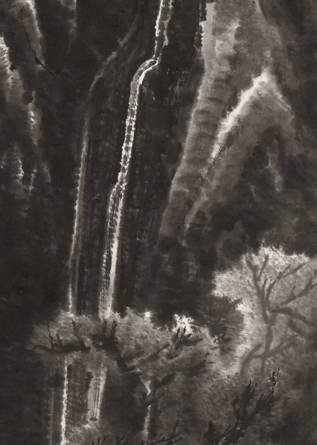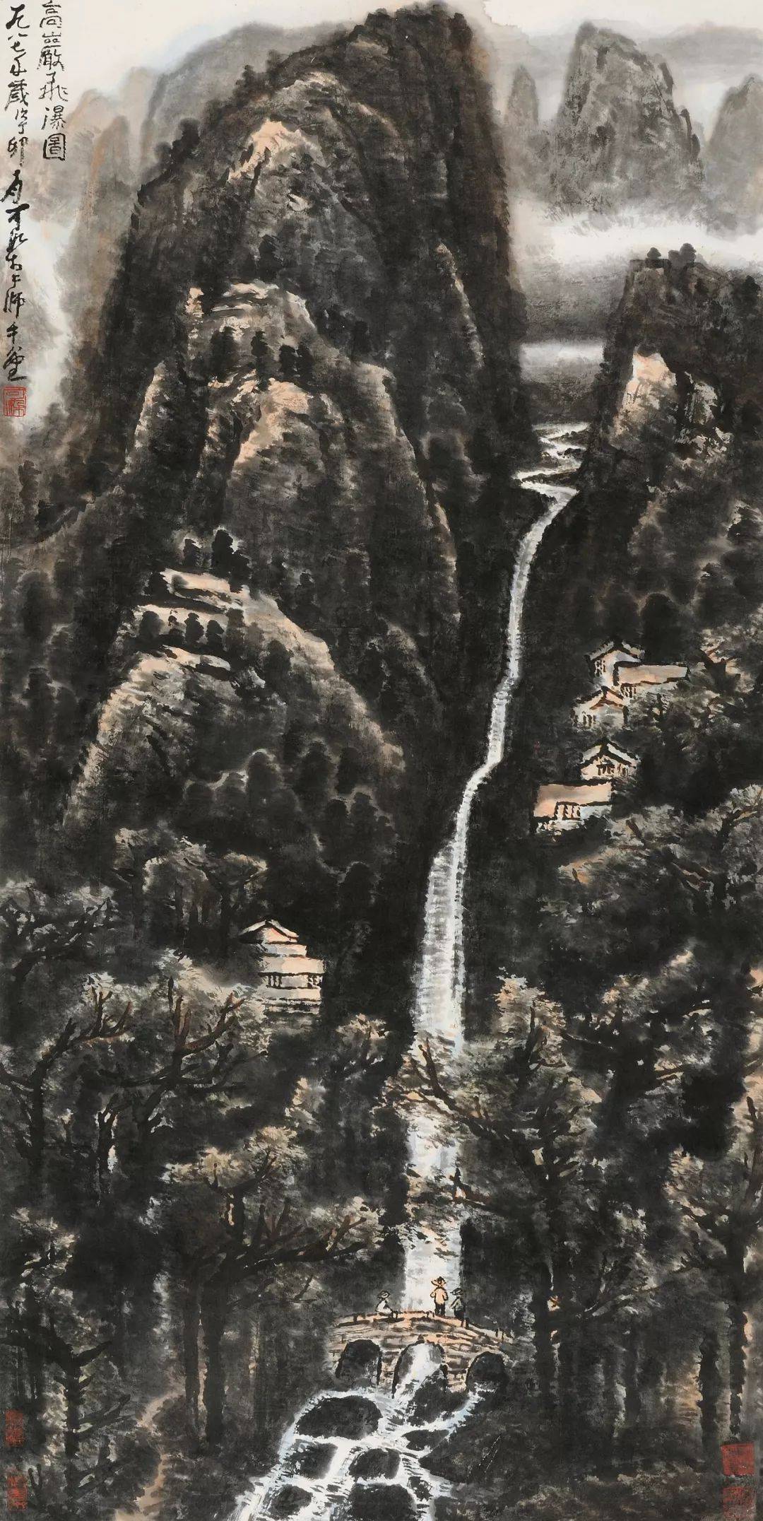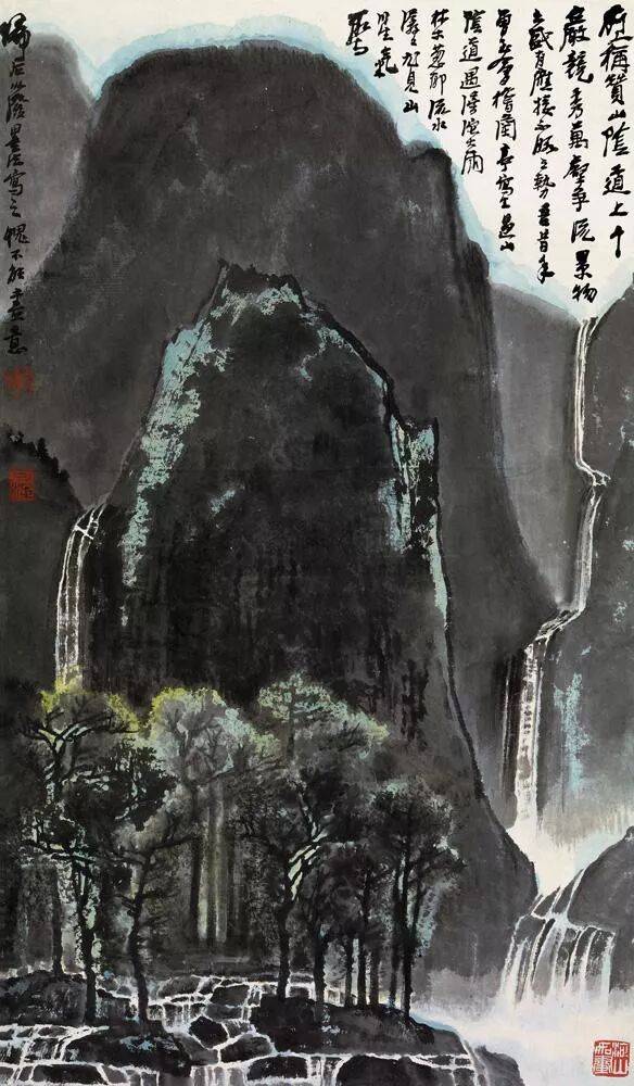 李可染《苍岩双瀑图》68cm×45.5cm 1983年作