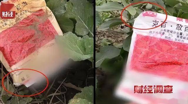 央视记者伪装成收购商去暗访,一进当地七屋巷村就闻到刺鼻的农药味,田埂上还散落着不少“克百·敌百虫”包装袋,上面明确写着克百威含量1%。