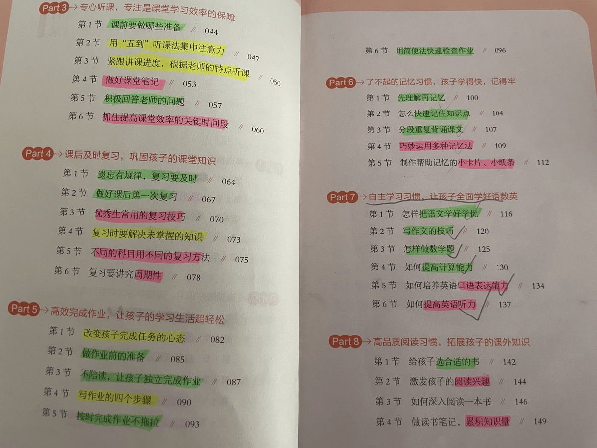 如何复习、预习,如何养成好的学习习惯,还有如何利用遗忘曲线,增强记忆效果。科学、省时,让孩子做到高效学习,而不是搞题海战术。