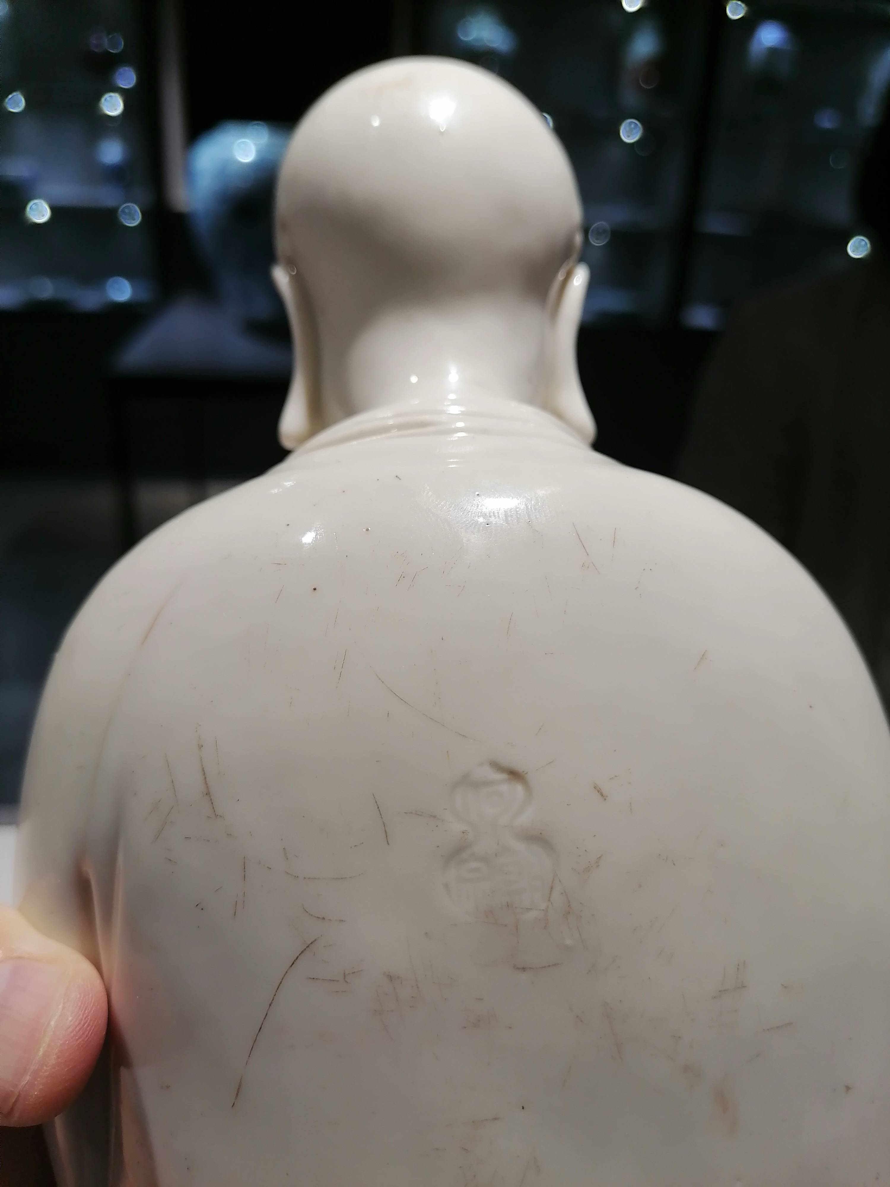 真正何朝宗作品上的印鉴,常常显得模糊不清,这背后隐藏着诸多历史因素。在明代,印章的制作材质多为木质、石质等天然材料 ,这些材料在长期的使用过程中,容易受到磨损和侵蚀,导致印章表面的字迹逐渐模糊。当时的钤印方式主要依靠手工按压,力度和角度的不均匀也会使得印鉴的清晰度受到影响。岁月的流转更是对印鉴产生了不可忽视的作用,历经数百年的传承,印鉴上的字迹在无数次的触摸、搬运和保存过程中,逐渐变得模糊,这些模糊的印鉴,宛如历史的密码,记录着作品的传承轨迹和岁月沧桑 。相比之下,现代仿品的印鉴往往十分清晰,这是因为仿品制作者为了追求表面的逼真,常常使用现代先进的雕刻技术和印章材料,使得印鉴失去了历史的韵味和自然的质感。有些仿品的印鉴甚至在制式上都与真品存在差异,字体的形态、笔画的粗细、葫芦形的比例等都可能出现偏差。在鉴别何朝宗德化瓷时,印鉴的模糊程度和制式特征是重要的判断依据之一。通过对印鉴的仔细观察和分析,结合历史背景和制作工艺,我们能够更加准确地辨别出真品与仿品,领略何朝宗德化瓷印鉴之秘的独特魅力和不可复制性。