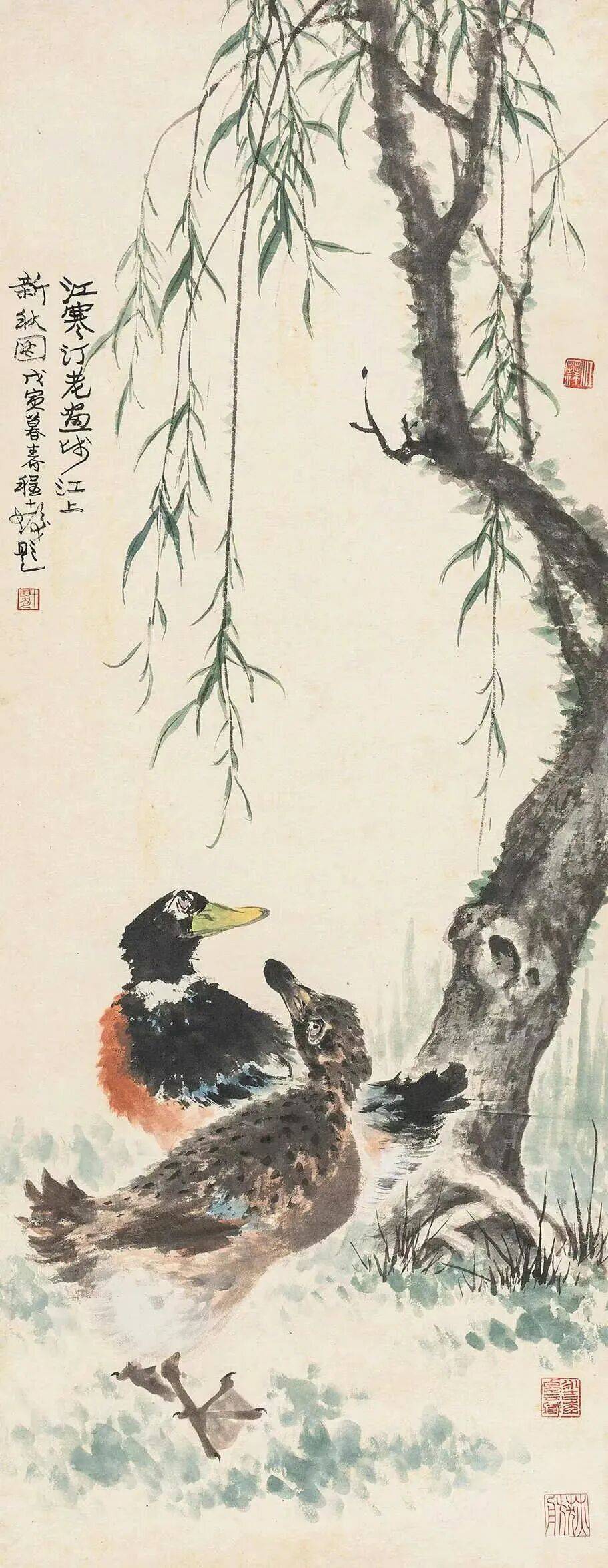 吃谷物的禽鸟,其嘴短厚有力;吃鱼虾的水禽,嘴阔而扁,且足有蹼;吃昆虫、果实的鸟,嘴尖长;猛禽则嘴勾、目利、爪似铁钩;孔雀与鸡的脚有距,脚皮组织如鳞片。初学禽鸟画,需抓住各类禽鸟动作中最传神的一刹那来描绘。
