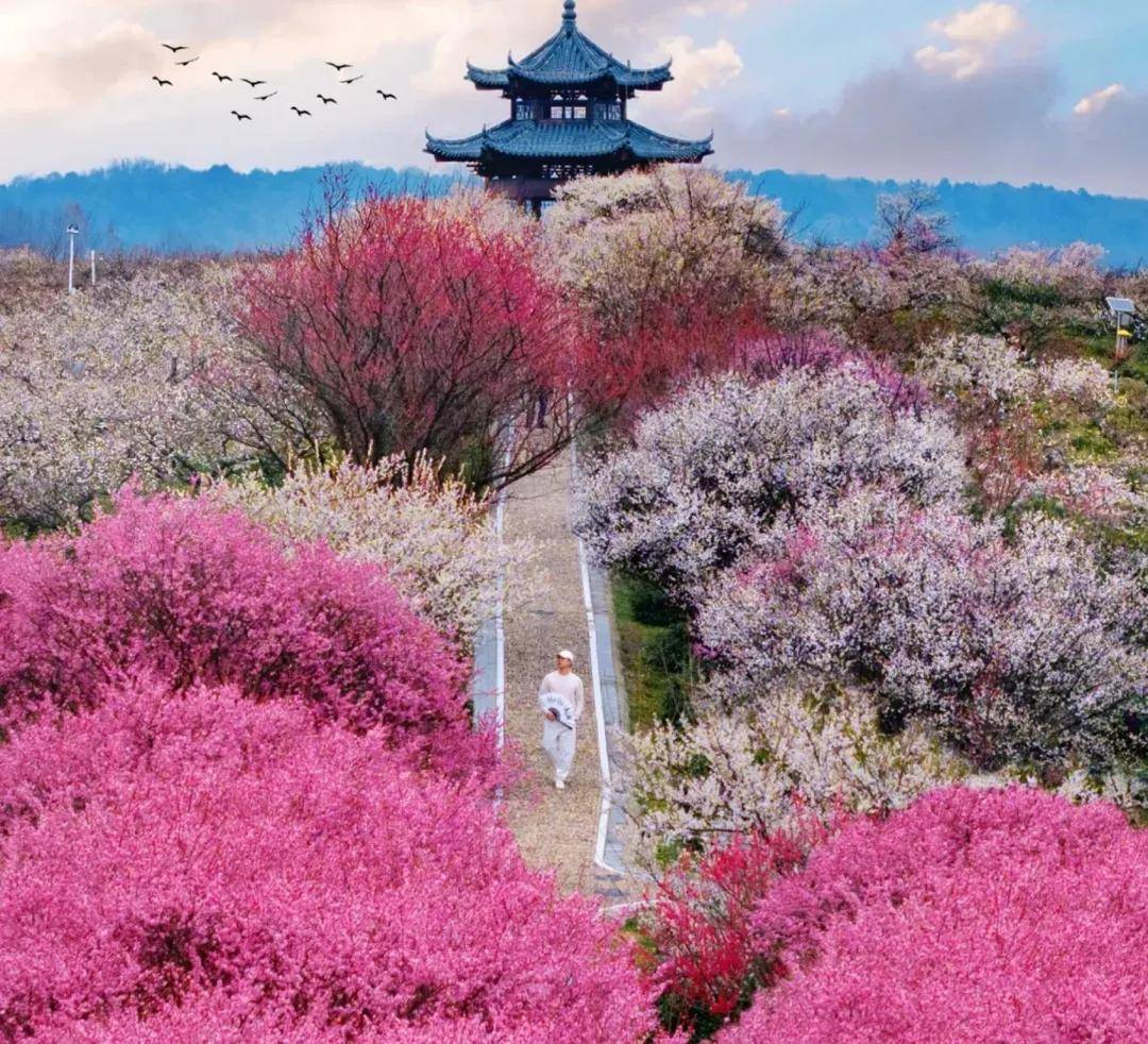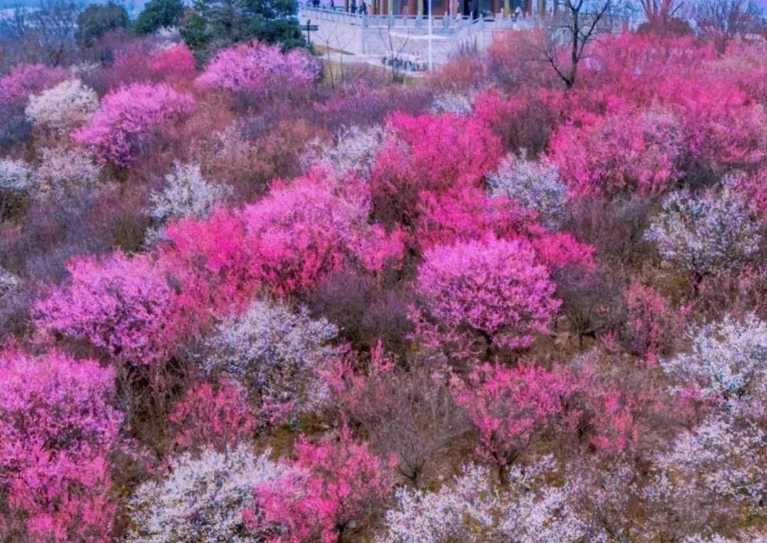 早春时节,南京梅花山万株梅花次第绽放,粉白嫣红交织成海,幽香浮动,沁人心脾。