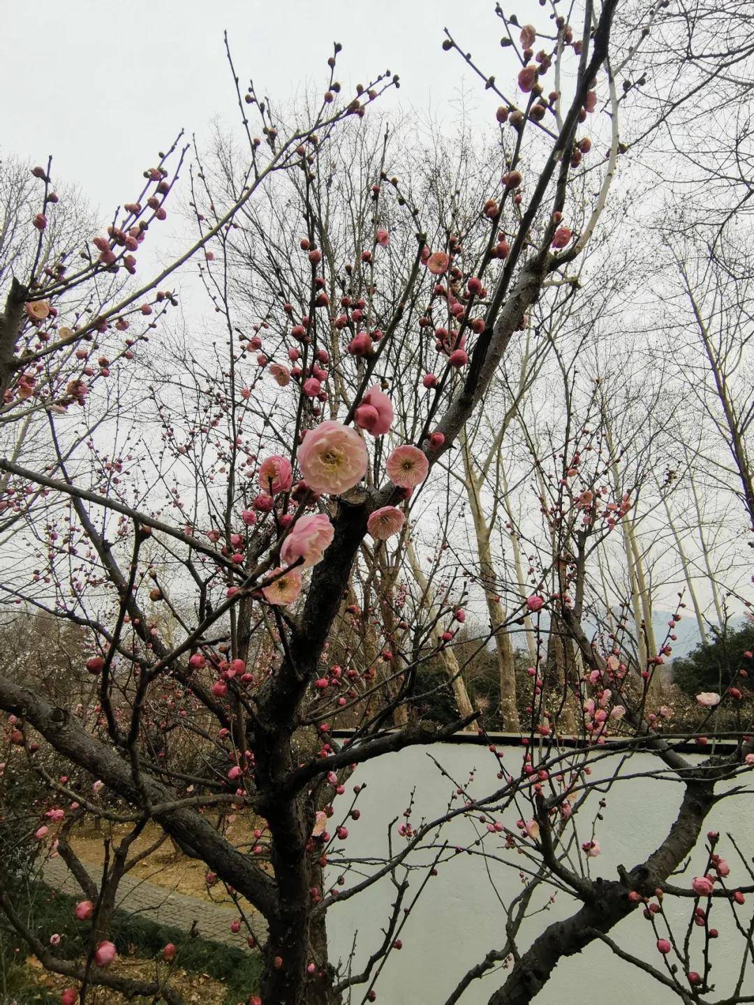 这座被誉为“天下第一梅山”的胜地,拥有3万余株梅花,涵盖宫粉、朱砂、玉蝶、垂枝、杏梅等数十个品种,其中不乏名字奇趣、花姿独特的珍品:
