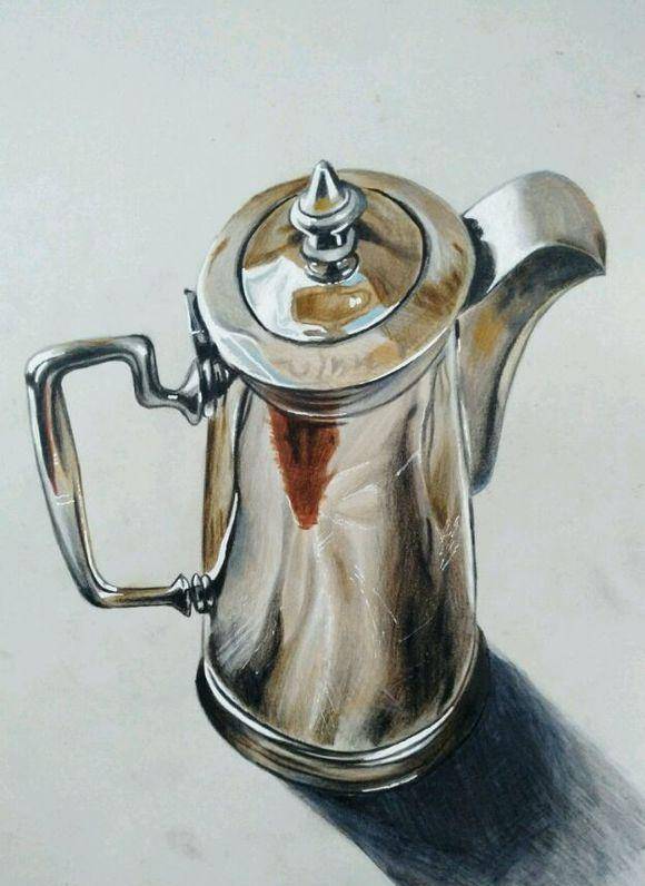 说起超写实油画,很多人往往会认为它只是简单的“照片复制”,缺乏艺术性,给人的感觉就像是对现实世界的机械复刻,没什么太多看头。其实,这种观点是对超写实油画的误解。超写实艺术的魅力,并不在于它的“复制”性质,而是在于它能够通过极其细腻的笔触和精准的色彩处理,唤起观者更深层次的情感共鸣,带来对细节的全新认识。罗中立的《父亲》便是一个典型例子,虽然是写实油画,但其中所传递的情感和深意,足以让人久久回味。而冷军作为超写实的代表,则在这方面更是推陈出新,将写实油画的艺术性推向了一个新的高峰。他的作品,不仅仅是对物体的还原,更是在作品中融入了生命的气息,让看似普通的物品也充满了丰富的情感层次。 然而,艺术的魅力就在于它没有固定的标准,神州大地上人才辈出,总有一些年轻的艺术家,勇敢地站出来挑战前辈的成就。今天我们要讲的,正是这样一位90后的画家。他的挑战方式很特别——他选择了以超写实油画的方式来与冷军的作品一较高下。他画的,是一只不锈钢水壶,临摹的是意大利超写实大师马切洛的作品。马切洛的超写实画风与冷军有些许不同,他的作品更倾向于3D立体感的表达方式,给人一种仿佛可以触摸的视觉体验。我们熟悉的3D电影已经让我们对立体效果不再陌生,但3D油画却仍然是一种较为罕见的艺术形式,这种风格的作品,更加引人注目。