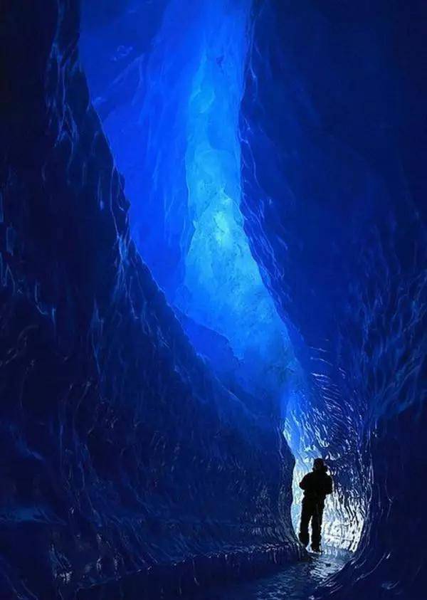 蓝色的冰洞,位于冰岛的斯卡夫塔费德。就隐藏在欧洲最大的冰川——瓦特纳冰原之下,冰洞的外观乍看与一般的洞穴无异,但走进去你将会觉得走入冰之王国,任何人都会被它那冰冷却绚丽、神秘又迷幻的壮丽绝景给震慑到忘记呼吸。