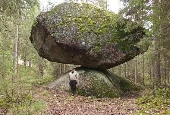 在芬兰一片茂密的森林中,有人居然发现了这样一块奇特的平衡石。
