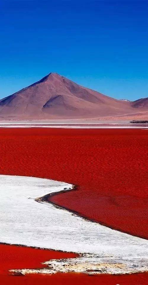 美国“碱湖”(或叫“苏打湖”),之所以出现红色,是杜氏盐藻水华的结果。