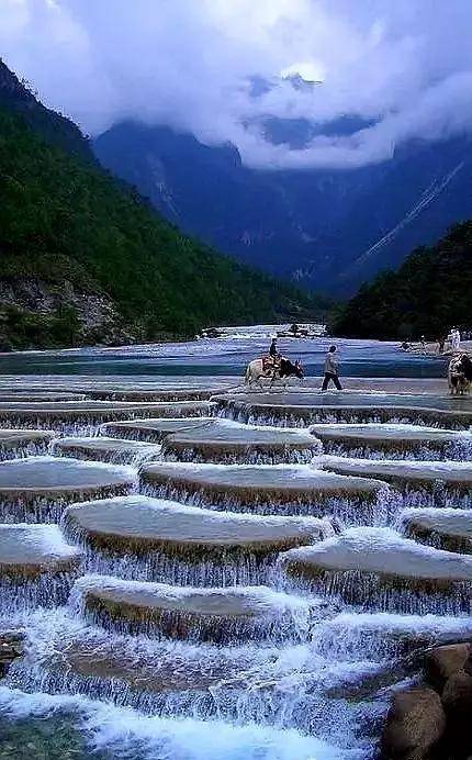 云南玉龙雪山的蓝月谷,其前身为早前人们所熟知的“白水河”。在晴天时,水的颜色是蓝色的,而且山谷呈月牙形,远看就像一轮蓝色的月亮镶嵌在玉龙雪山脚下,所以名叫蓝月谷。而白水河这个名字是因为湖底的泥巴是白色的,下雨时水会变成白色,所以又叫白水河。