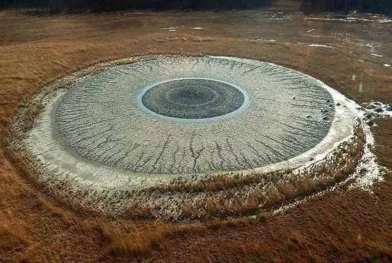 摄影师乘坐飞机飞跃俄俄罗斯东部时,看到地上放佛有一颗巨大的眼睛在盯着他,原来这是普加切夫斯基泥火山( Pugachevskiy mud volcano)。