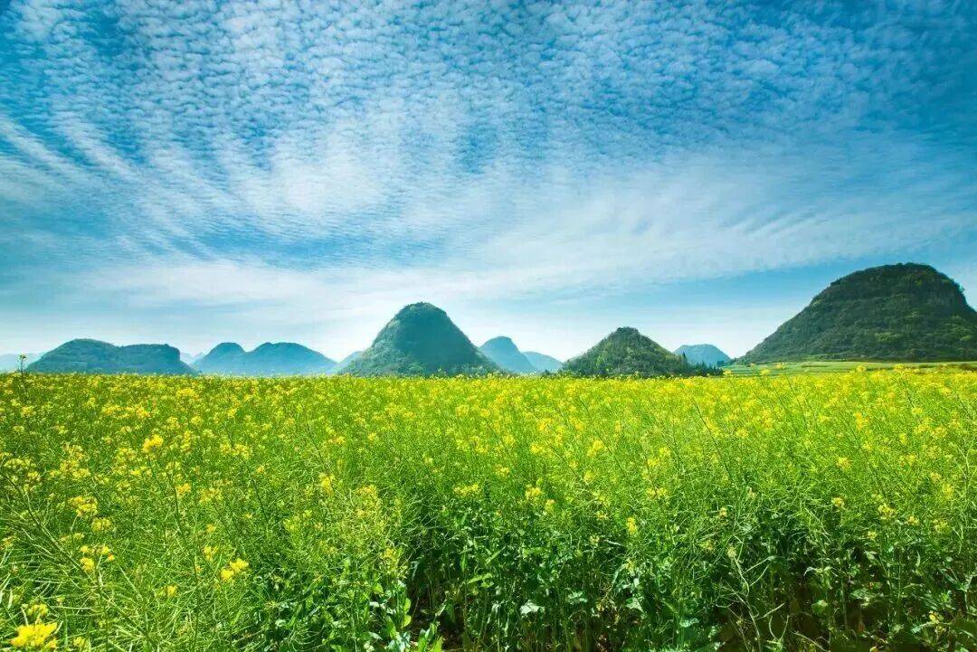 喀斯特峰林穿插在油菜花田中