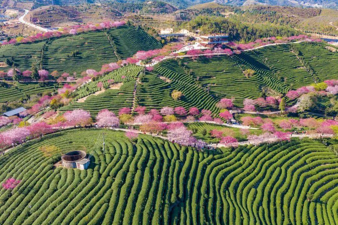 还有穿行于茶山的网红樱花小火车