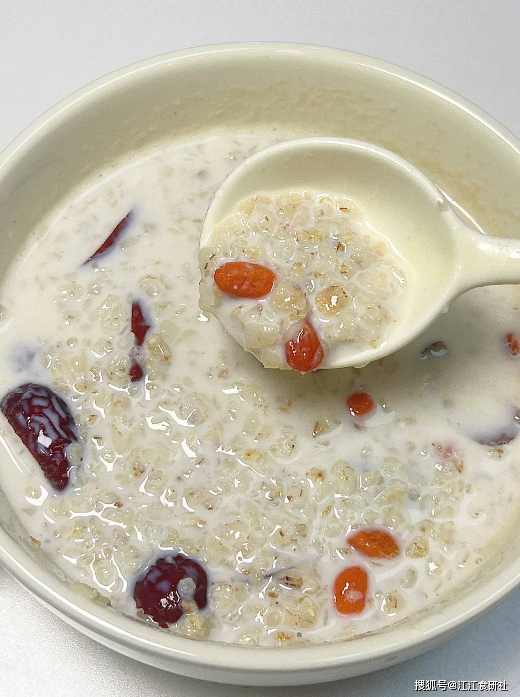 用牛奶代替水来煮粥。奶香和麦香融合,口感立刻变得醇厚高级。