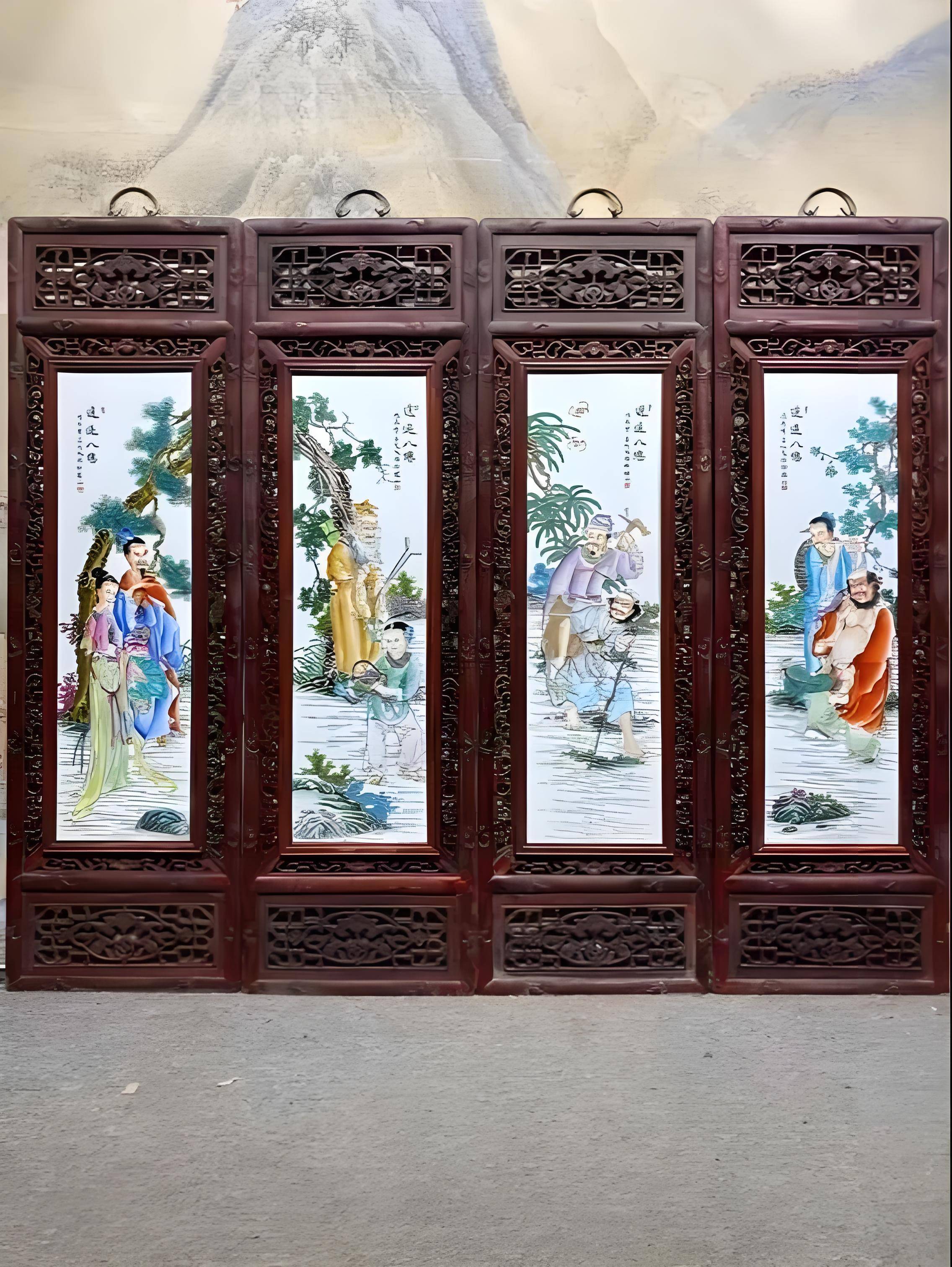 其釉面温润如玉,光泽柔和,犹如一层薄薄的轻纱覆盖在瓷板上,给人以含蓄、内敛的美感 。釉层的厚度适中,既能完美地展现绘画的色彩和笔触,又能保护画面不受外界因素的侵蚀。仔细观察釉面,还能发现一些细微的气泡,这些气泡大小不一,分布均匀,是在烧制过程中自然形成的,为瓷板画增添了一份独特的韵味。在他的《八仙过海图》四条屏中,瓷板质地洁白细腻,釉面温润光泽,为八仙的生动描绘提供了绝佳的载体,使得人物形象更加栩栩如生,色彩更加鲜艳夺目 。