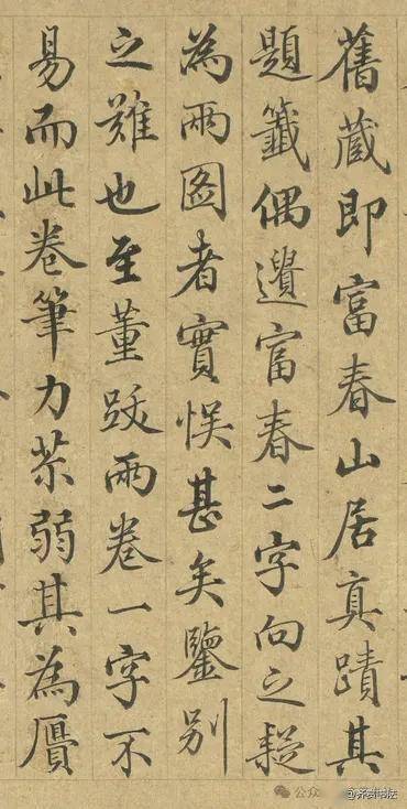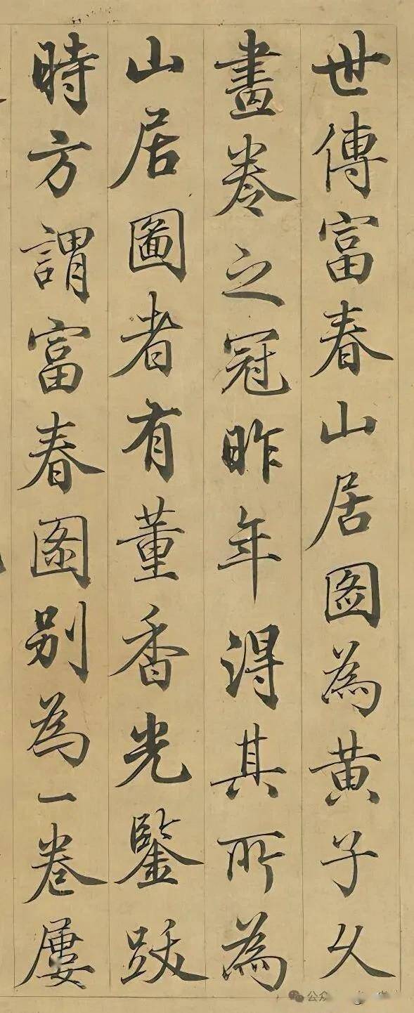 今天,小编来分享一幅清代书法顶流梁诗正的行楷书《跋富春山居图》,小编曾分享过梁诗正的经典行书代表作《十宫词》,梁诗正的行书,可以说是清代首屈一指的,据说著名的书法家启功先生就是学的梁诗正。这幅跋文,是题写在大名鼎鼎的《富春山居图》上的,《富春山居图》是元代黄公望所作,被誉为“画中之兰亭”。而梁诗正的这幅题跋,则是记述了乾隆皇帝鉴别《富春山居图》的轶事。