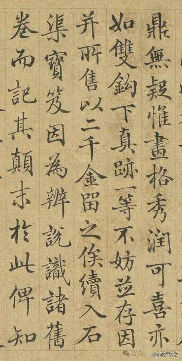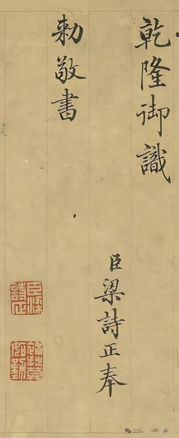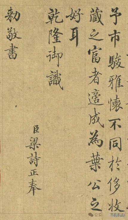 下面,再来说一下梁诗正的书法,从这幅跋文中,可以看到,梁诗正的行楷书真的非常漂亮,脱胎于馆阁体,却又融入了行书的洒脱,让字体更为灵动,好看且耐看。梁诗正浸淫晋唐法帖,对王羲之的飘逸、赵孟頫的圆润、柳公权的刚健等各家精髓了然于心,并能融会贯通,化为己用,造就了他既能将馆阁体写得工整、规范、端庄,又能在行书书写时挥洒自如,梁诗正的行书被誉为“清代第一”,可见一斑。