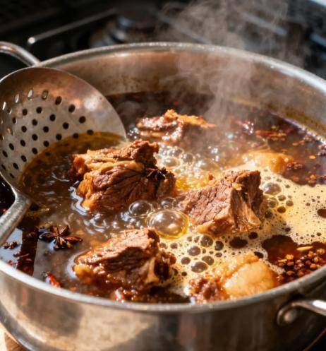 在使用上,八角虽然重要,但也不是越多越好。因为它含糖量高,放多了容易发苦,还会把肉色染得发黑。一般来说,卤5斤肉,放2-3颗完整的八角就足够了。为了让香味释放更彻底,下锅前可以用热水稍微泡一下,把表层的灰洗掉。
