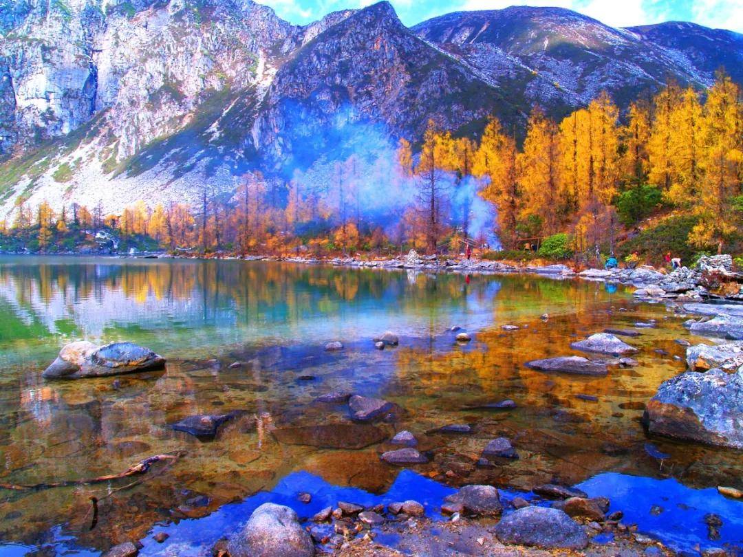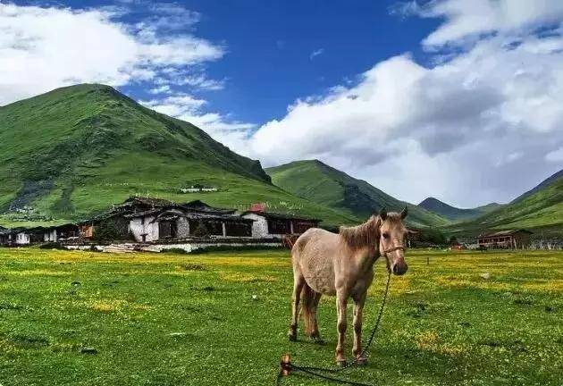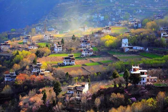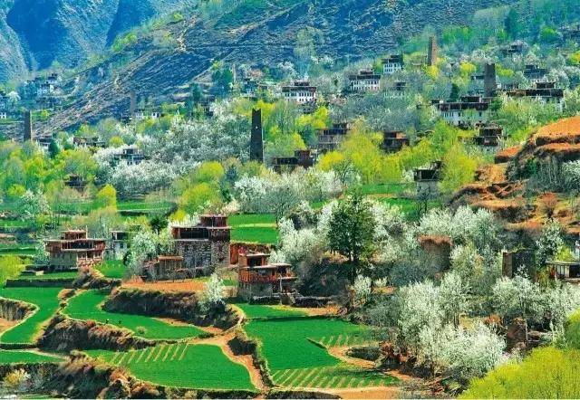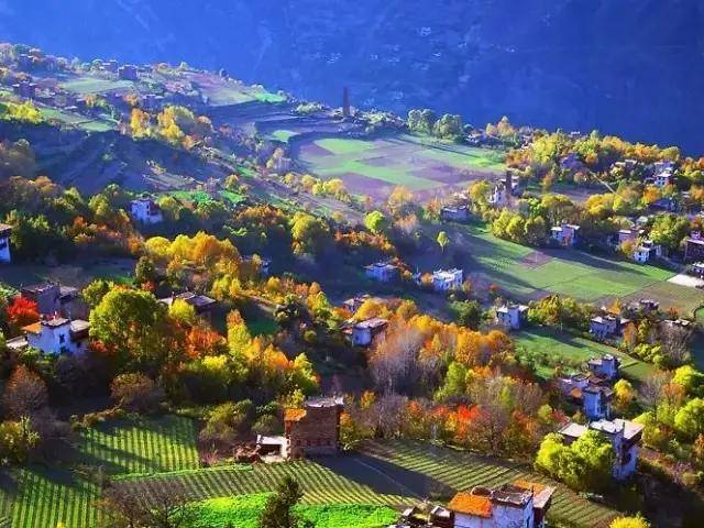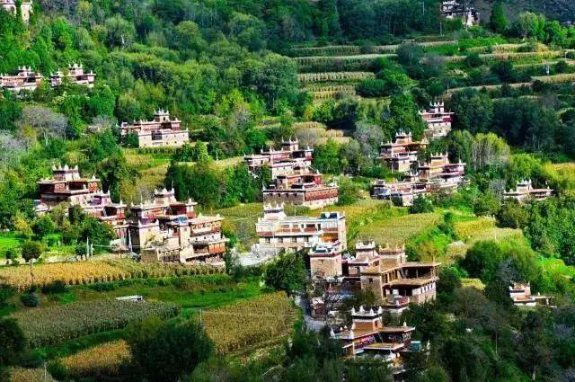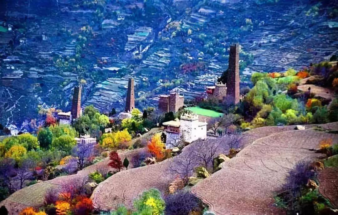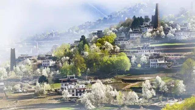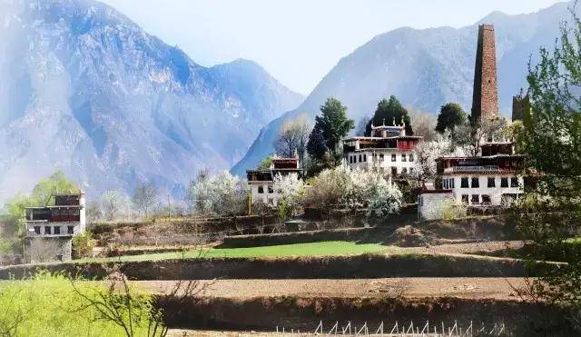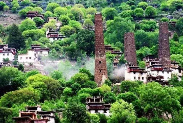一幢幢古碉与周围茂密的树林,清澈的溪流,皑皑的雪峰一起构成一幅幅田园牧歌式的优美的乡村画卷。