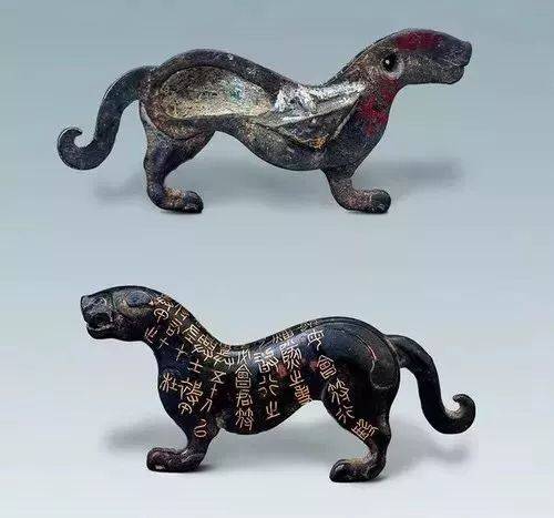 虎身上有工艺精湛的错金铭文9行共40个字,字体为圆转秀丽的悬针小篆。