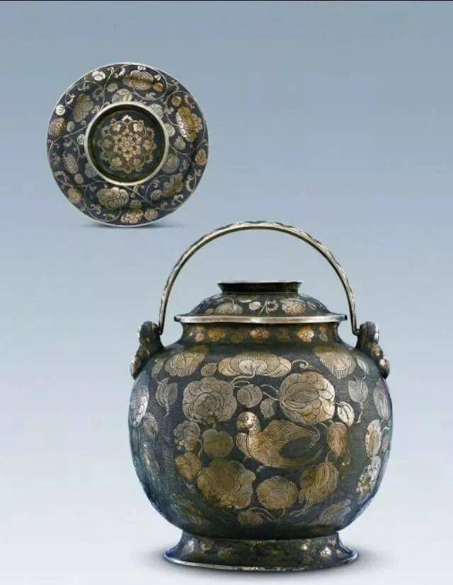 而且,银罐出土的时候,罐内尚存有半罐水,水上浮着一张极薄的金箔,