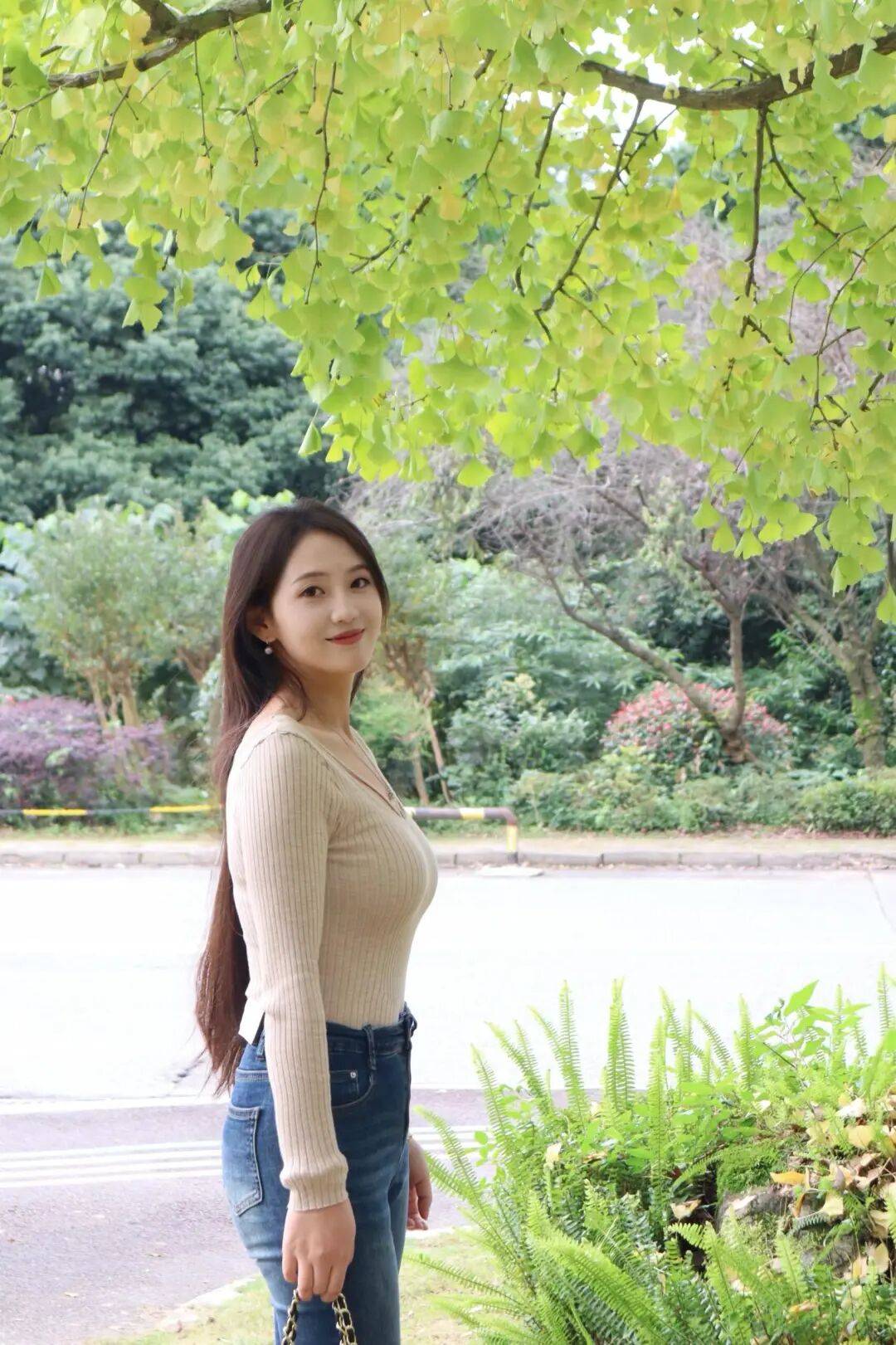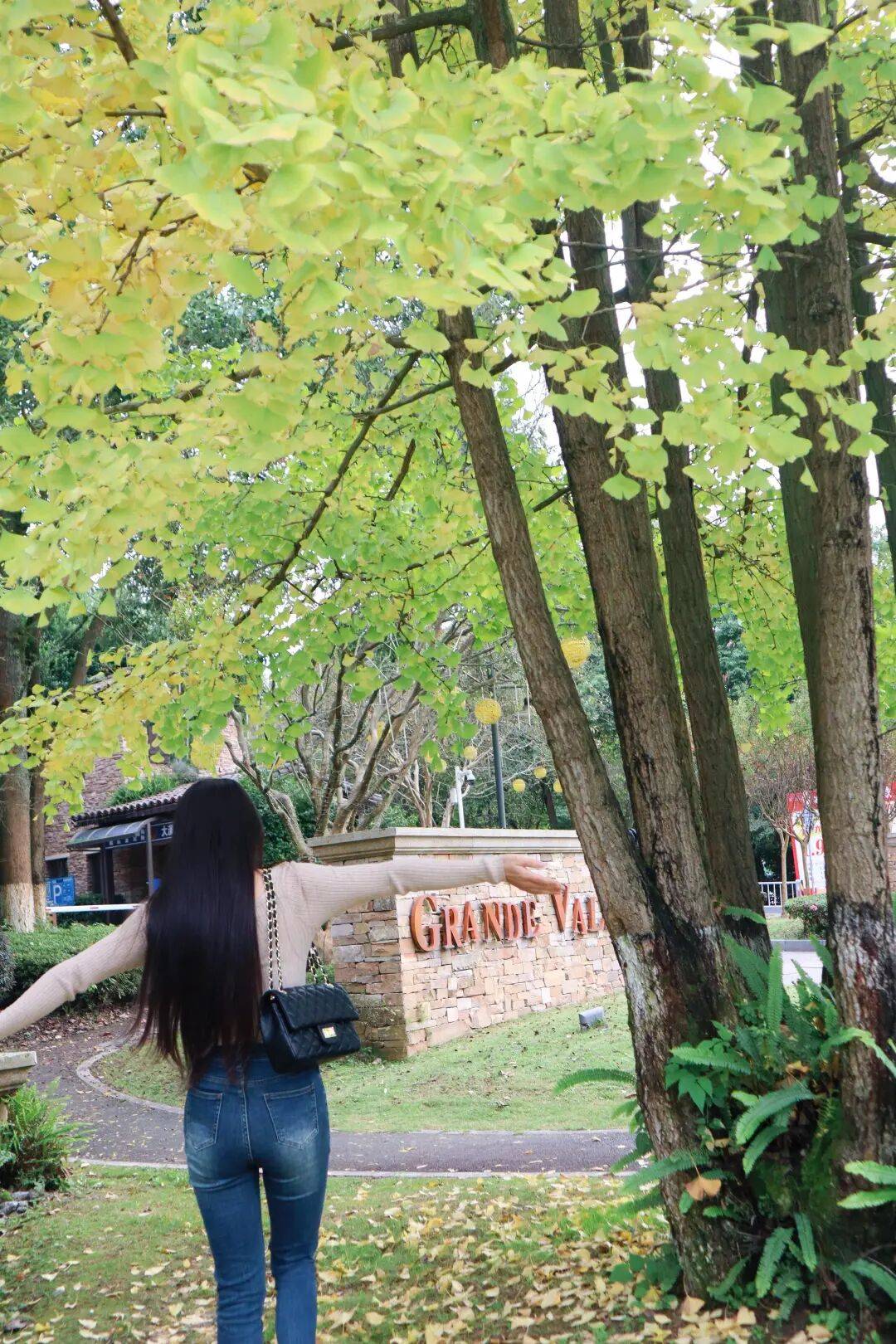 最后一张用了 “留白式构图”。把人物放在画面下半部分,上方留出大片的银杏树冠和天空,让整个画面有了呼吸感。人物的站姿放松,表情自然,没有刻意凹造型。要是把人物放在画面中间,上方的树会显得压抑,留白多一点,反而更能突出秋日的开阔感。