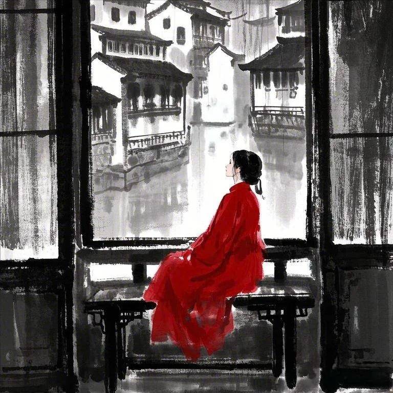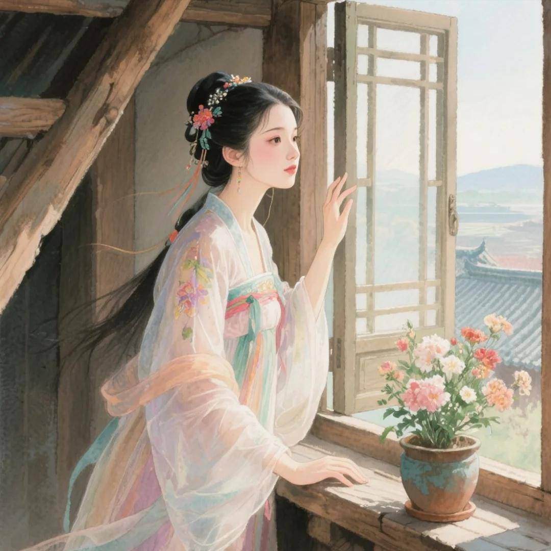 小小的院落里,窗户显得格外清闲,春意已深浓,却无人打扰这宁静。