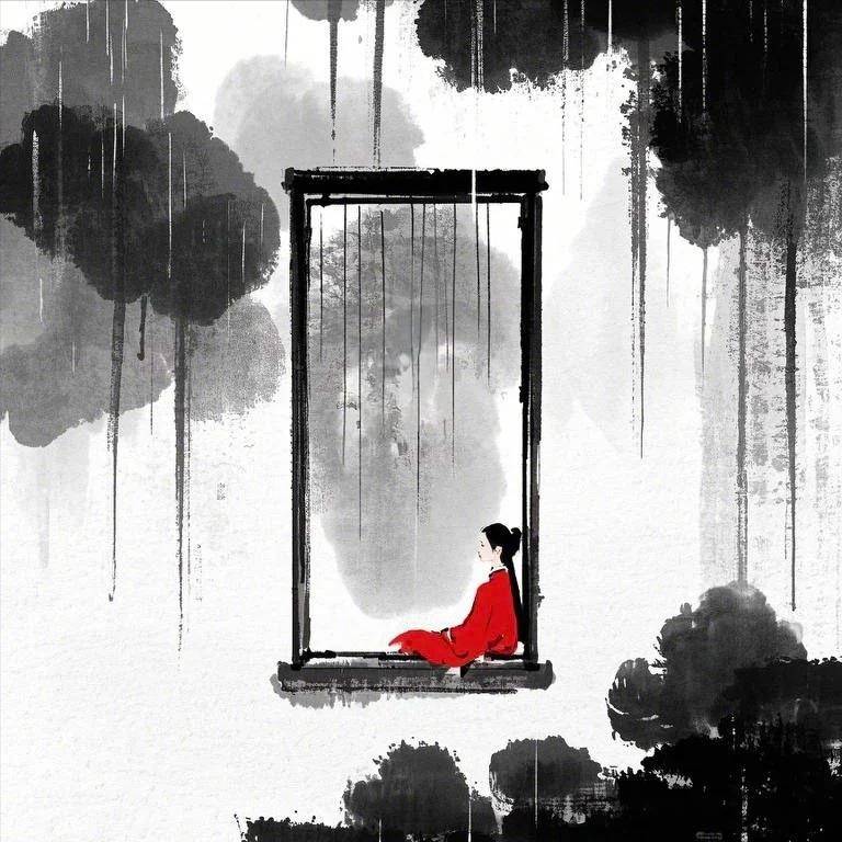一场细雨,悄然落下,打破了周遭的孤寂,带来一丝清凉。
