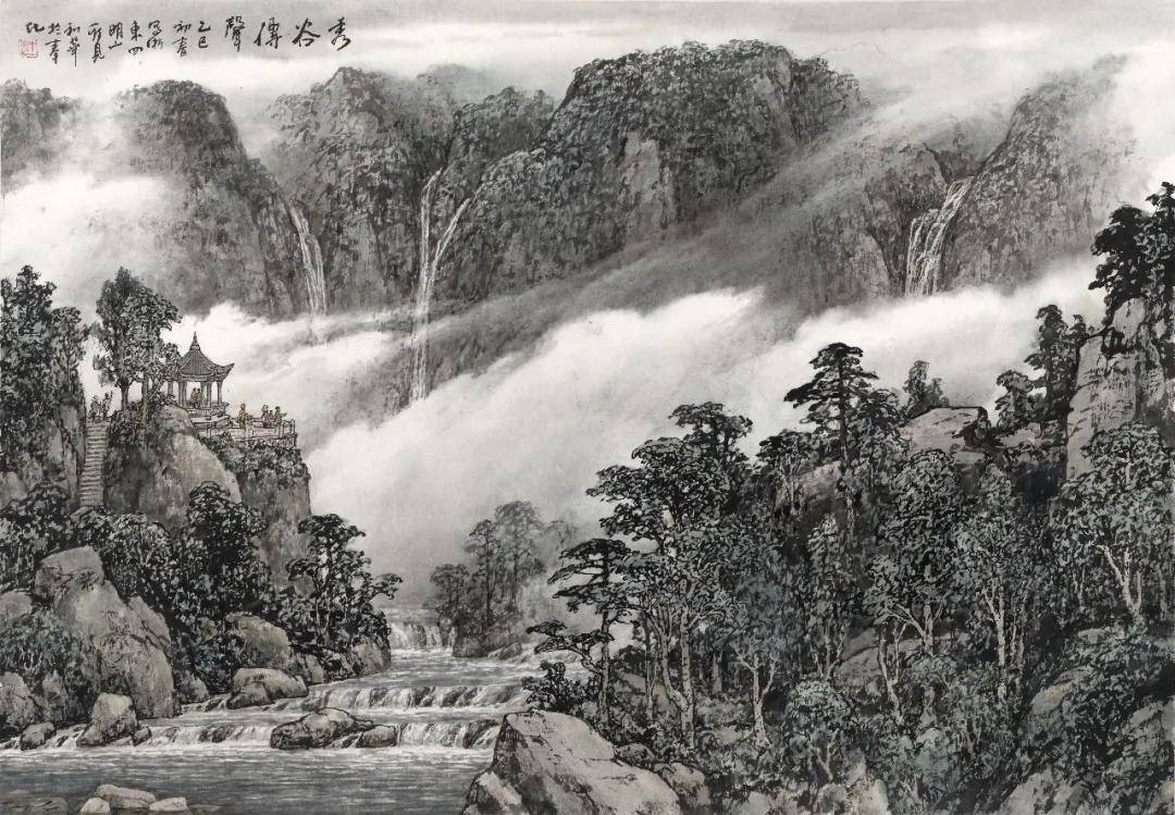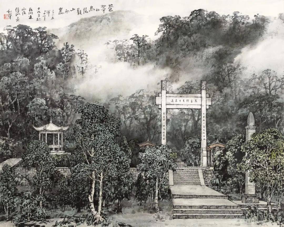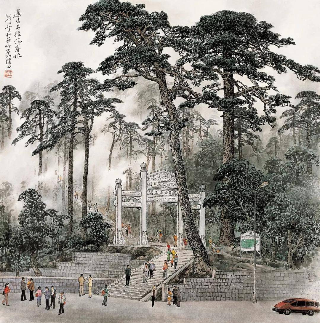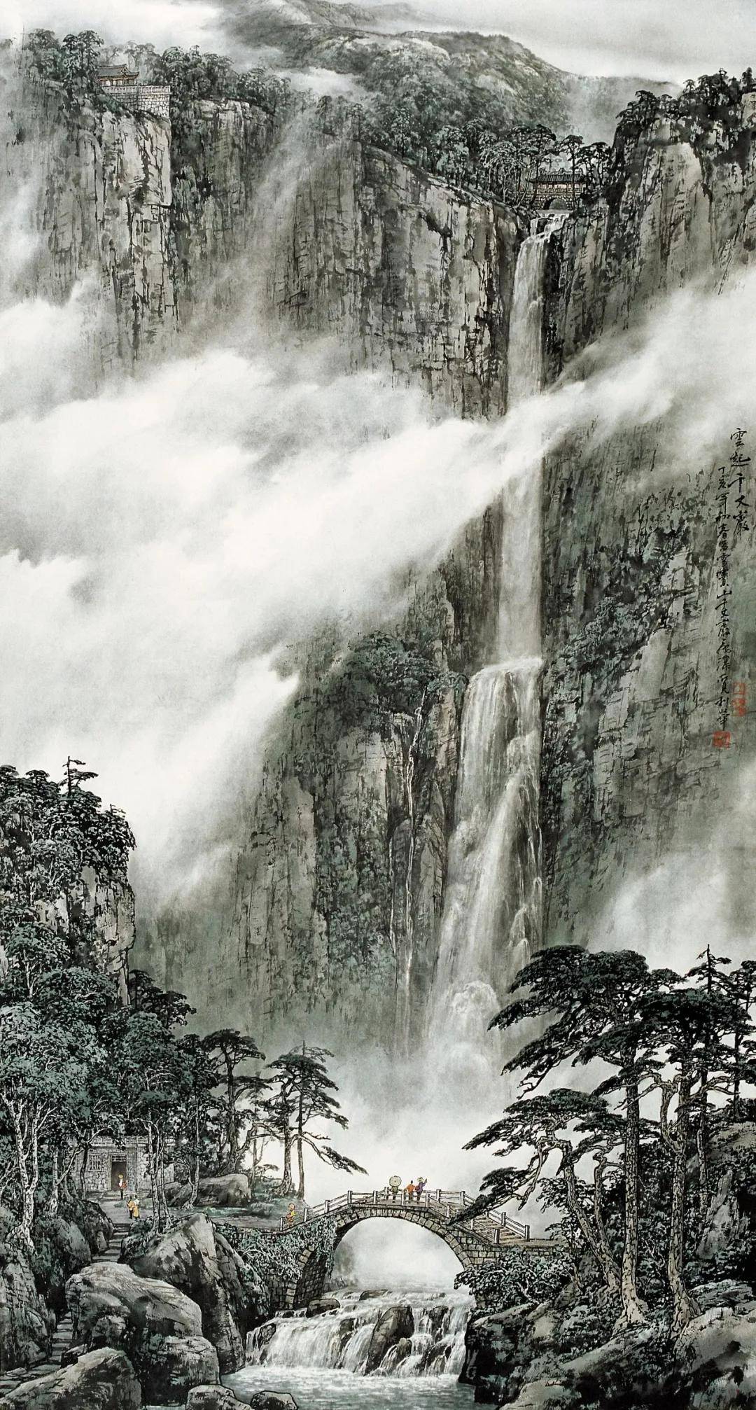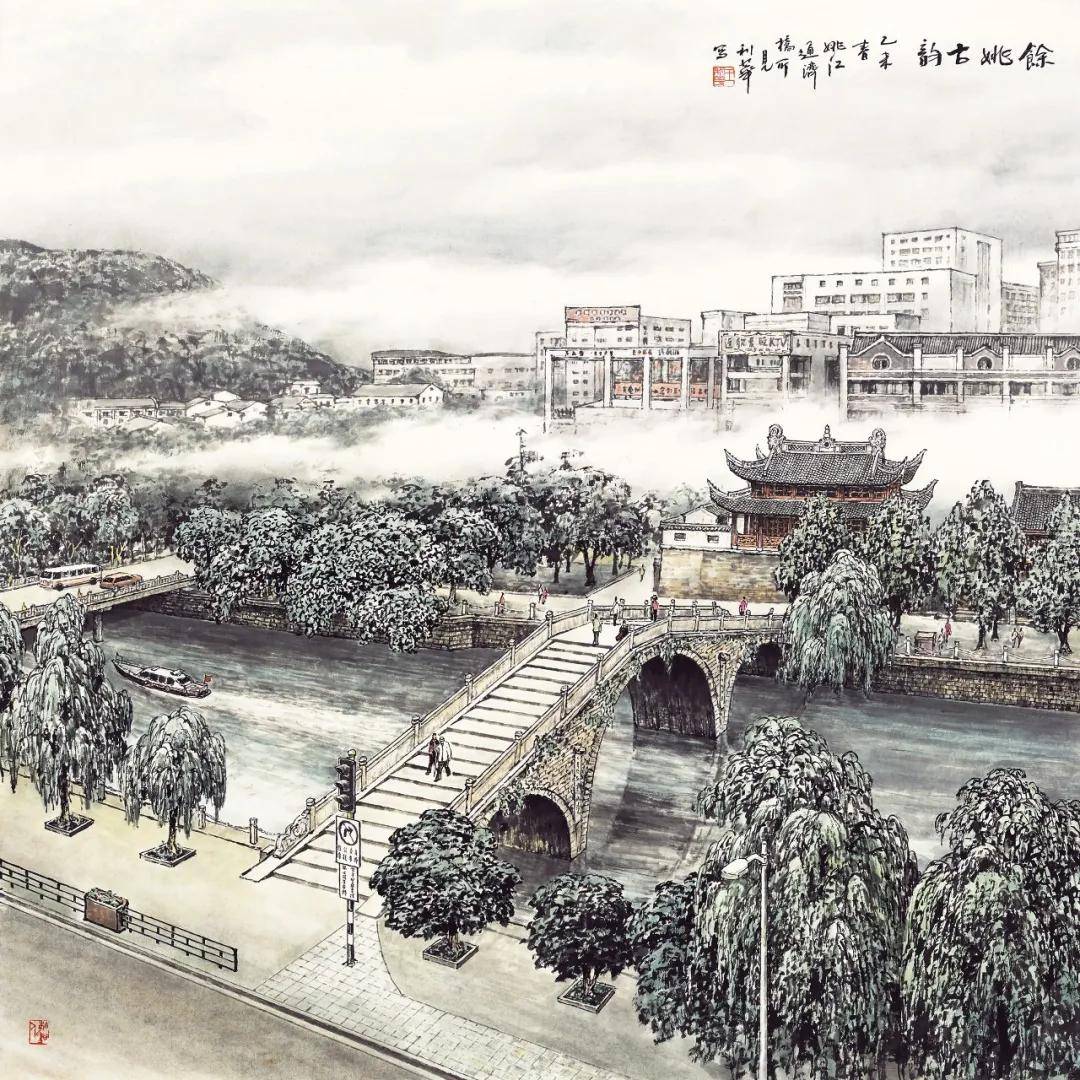 王利华果真没有辜负宝贵的“第二个艺术春天”。他将满心喜欢的家乡人文历史、山水风光、城乡建设直至乡土特产,化作了一幅幅令人赞叹的画卷,尤其是他笔下的四明山水既有江南之妩媚,又有崇山峻岭之磅礴。怎么表现家乡山水的无穷魅力?王利华颇费了一番思索。实践告诉他,传统的山水画技巧和程式已不能适应现代人欣赏的需求,他决心另辟蹊径——在保持鲜明民族特征的前提下,面向生活,师法造化,创造新的内容、新的立意、新的形式和新的技法。