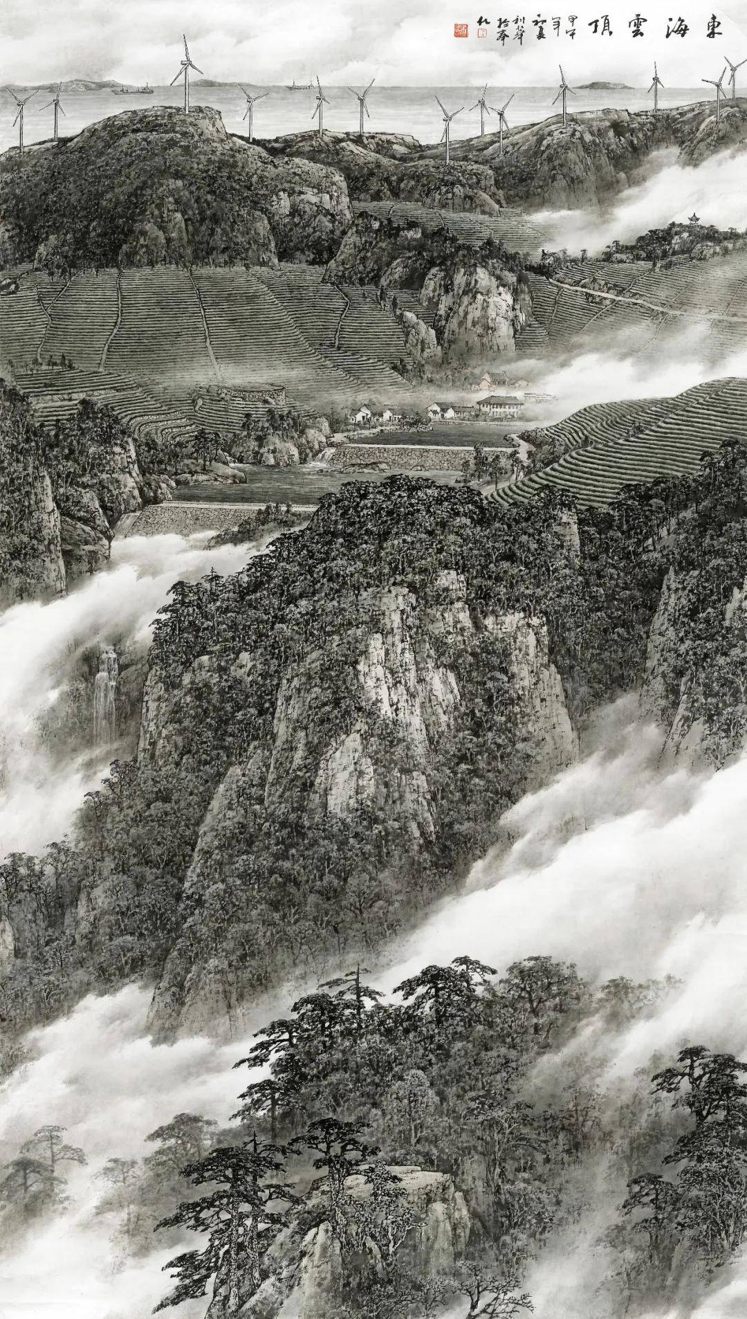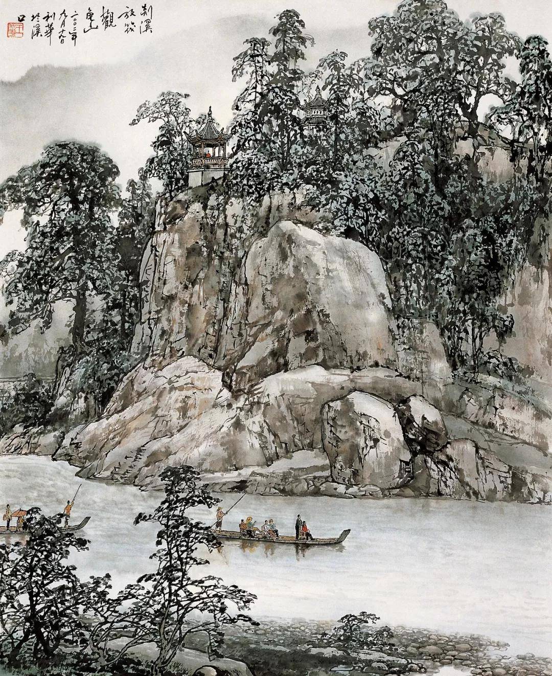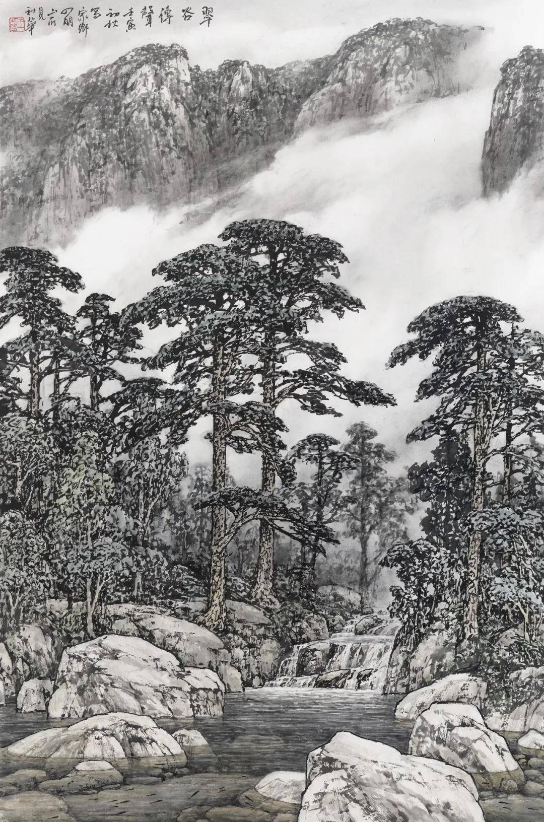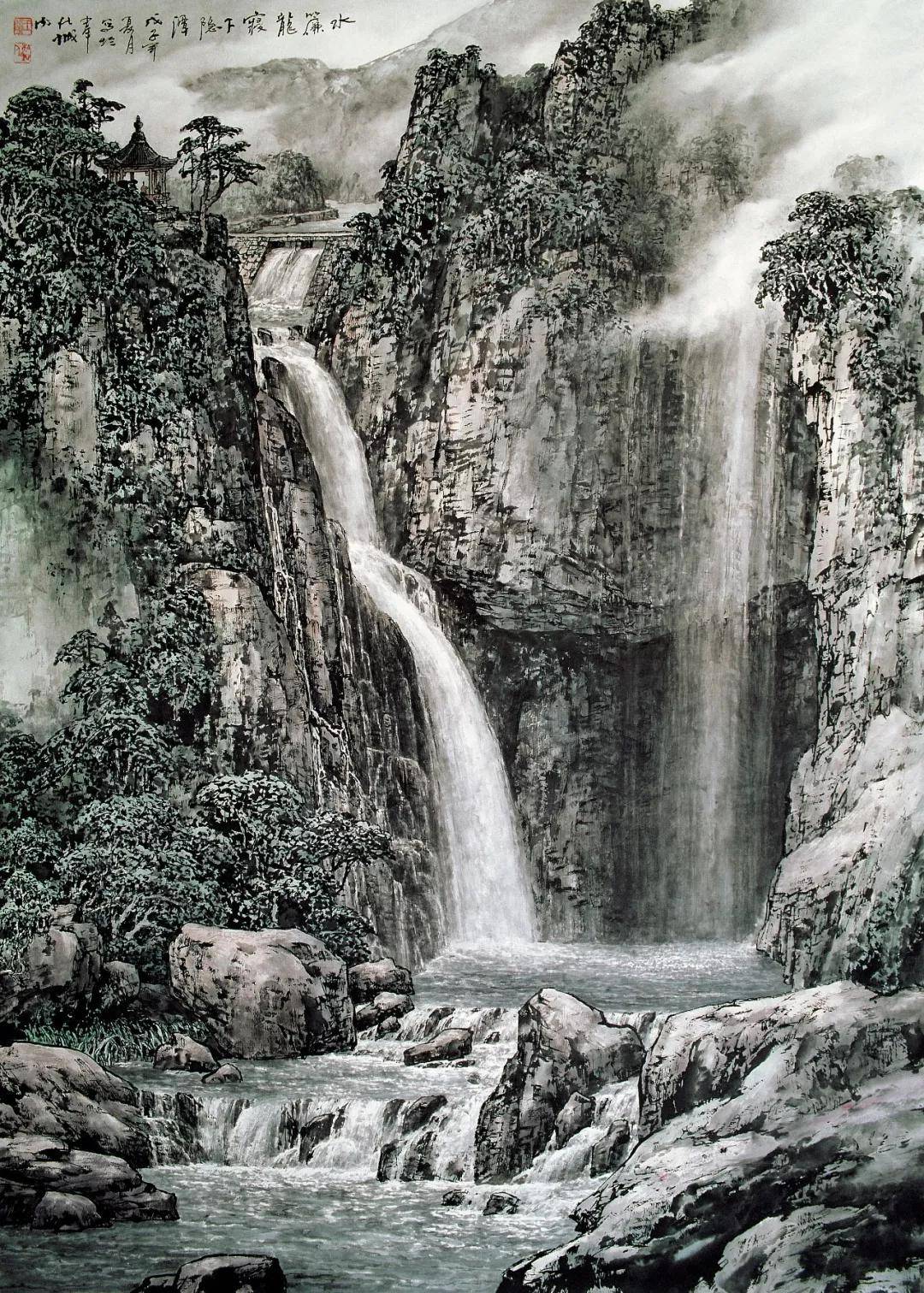 王利华果真没有辜负宝贵的“第二个艺术春天”。他将满心喜欢的家乡人文历史、山水风光、城乡建设直至乡土特产,化作了一幅幅令人赞叹的画卷,尤其是他笔下的四明山水既有江南之妩媚,又有崇山峻岭之磅礴。怎么表现家乡山水的无穷魅力?王利华颇费了一番思索。实践告诉他,传统的山水画技巧和程式已不能适应现代人欣赏的需求,他决心另辟蹊径——在保持鲜明民族特征的前提下,面向生活,师法造化,创造新的内容、新的立意、新的形式和新的技法。