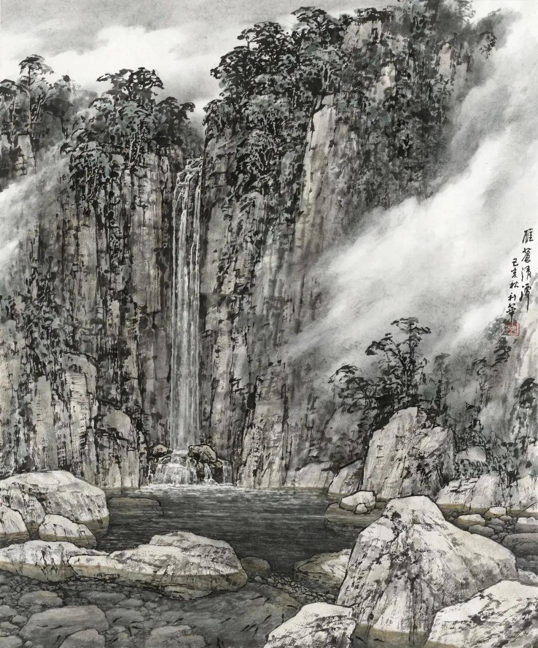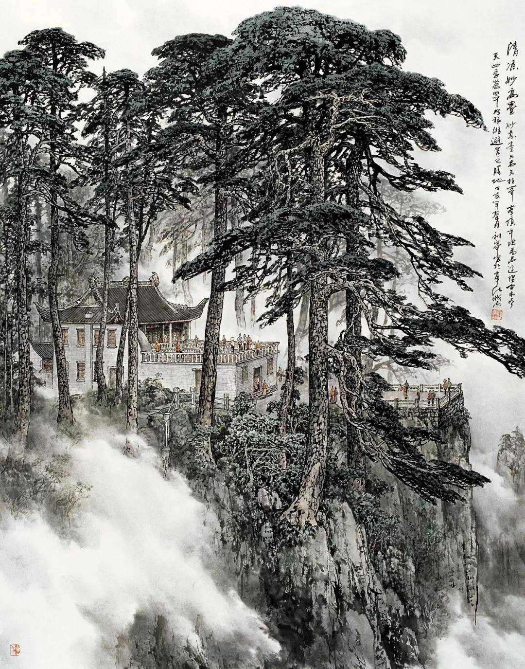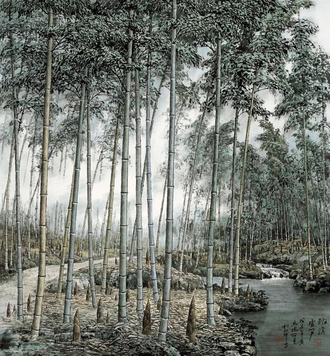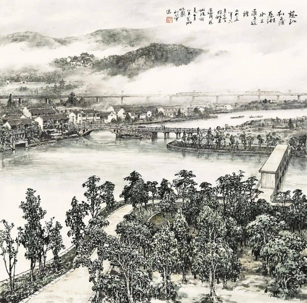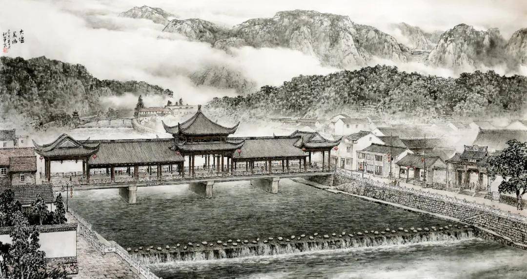 王利华果真没有辜负宝贵的“第二个艺术春天”。他将满心喜欢的家乡人文历史、山水风光、城乡建设直至乡土特产,化作了一幅幅令人赞叹的画卷,尤其是他笔下的四明山水既有江南之妩媚,又有崇山峻岭之磅礴。怎么表现家乡山水的无穷魅力?王利华颇费了一番思索。实践告诉他,传统的山水画技巧和程式已不能适应现代人欣赏的需求,他决心另辟蹊径——在保持鲜明民族特征的前提下,面向生活,师法造化,创造新的内容、新的立意、新的形式和新的技法。