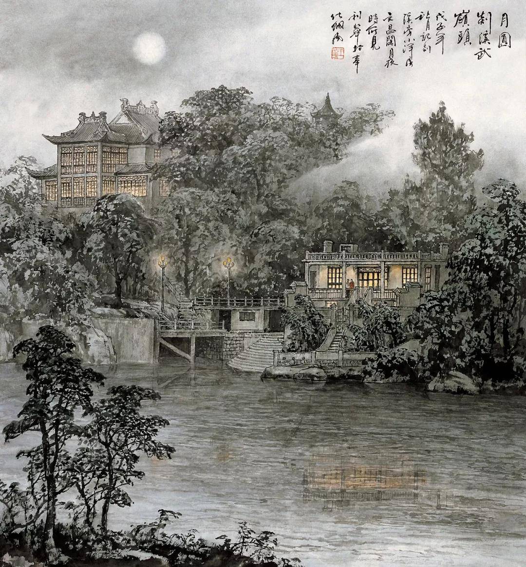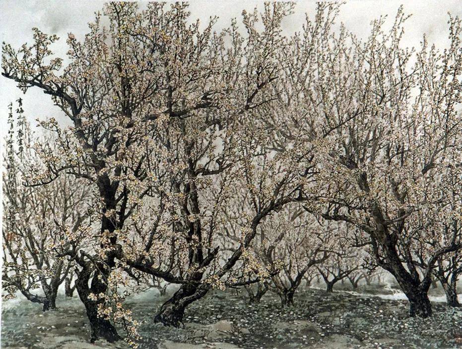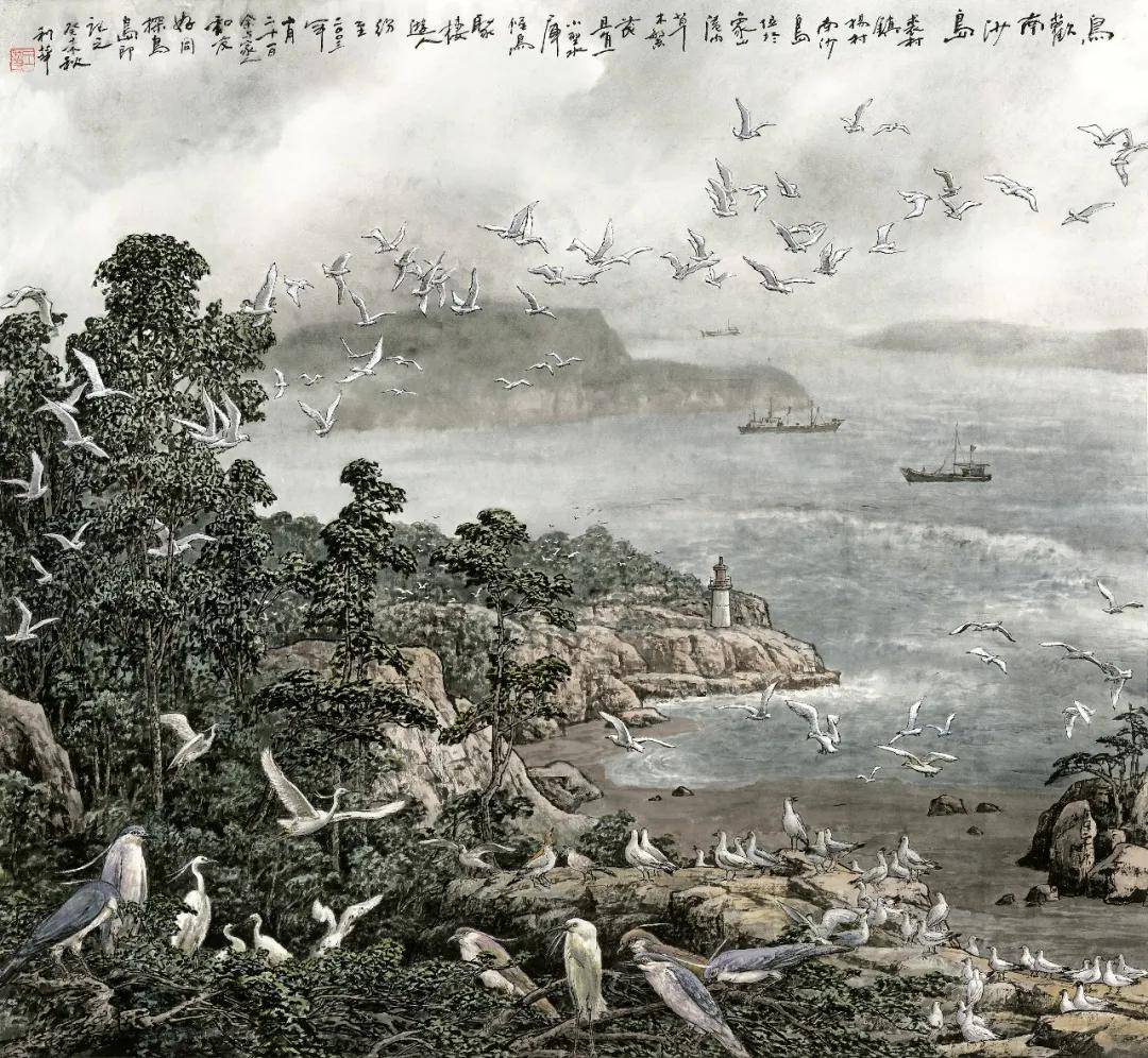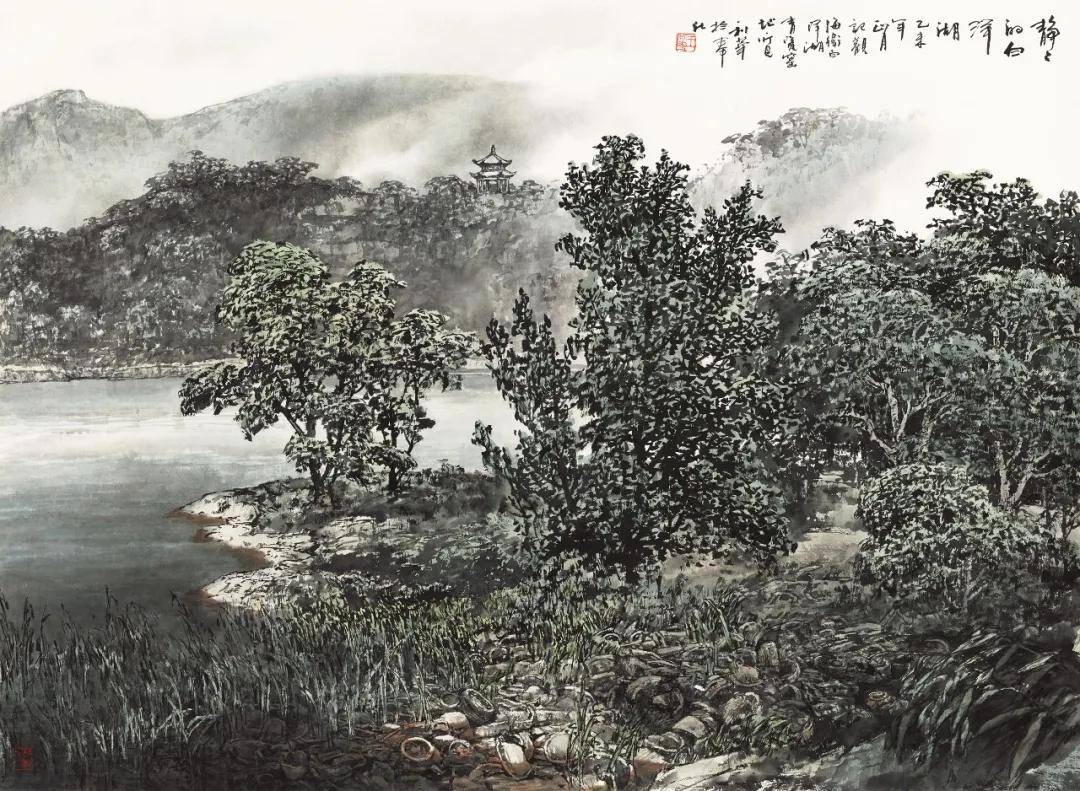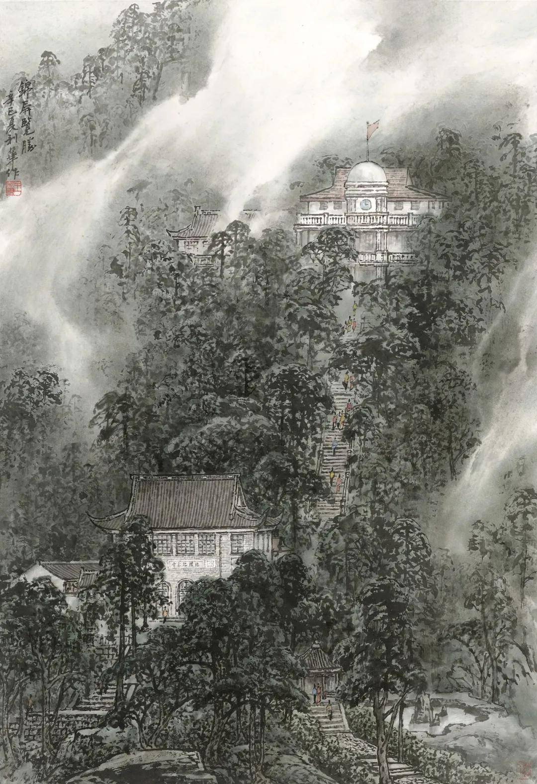 王利华果真没有辜负宝贵的“第二个艺术春天”。他将满心喜欢的家乡人文历史、山水风光、城乡建设直至乡土特产,化作了一幅幅令人赞叹的画卷,尤其是他笔下的四明山水既有江南之妩媚,又有崇山峻岭之磅礴。怎么表现家乡山水的无穷魅力?王利华颇费了一番思索。实践告诉他,传统的山水画技巧和程式已不能适应现代人欣赏的需求,他决心另辟蹊径——在保持鲜明民族特征的前提下,面向生活,师法造化,创造新的内容、新的立意、新的形式和新的技法。
