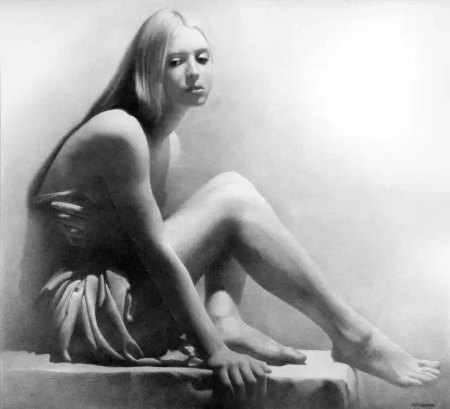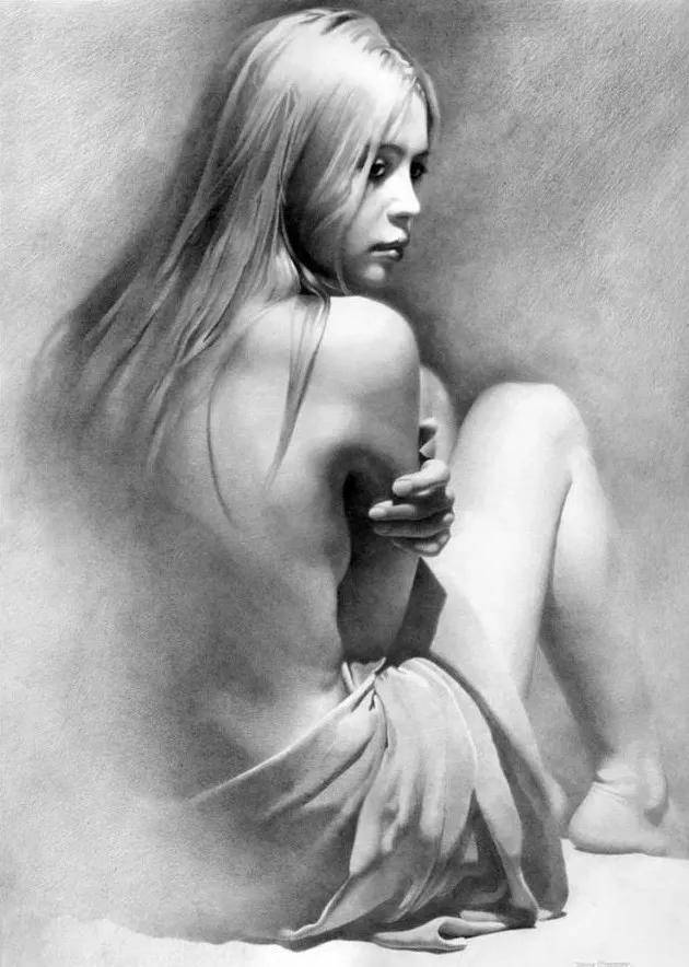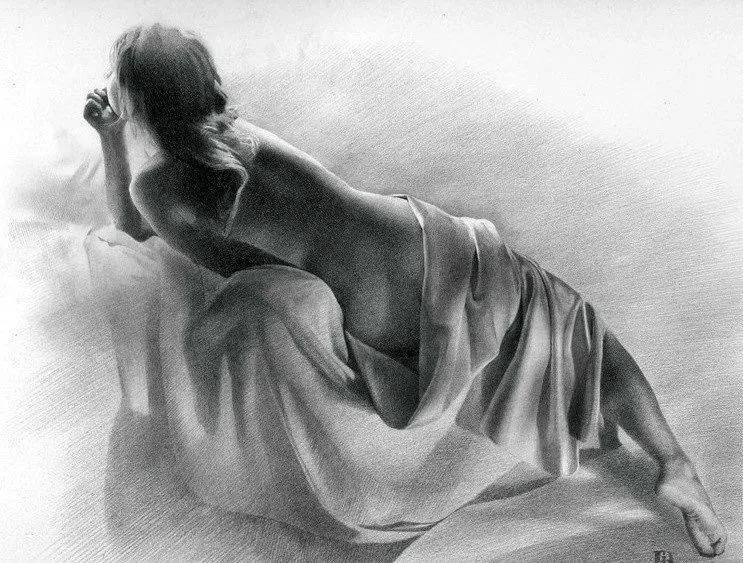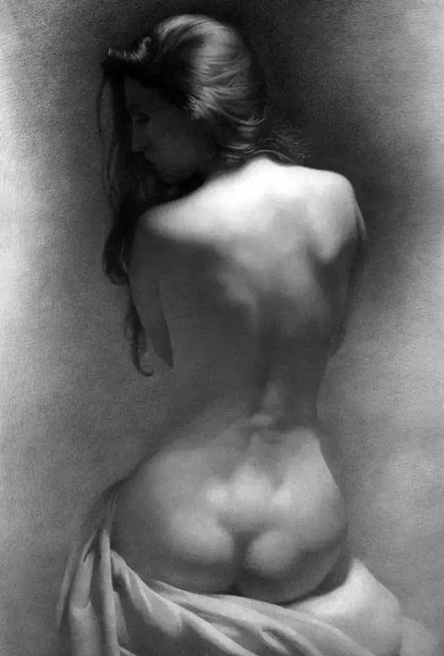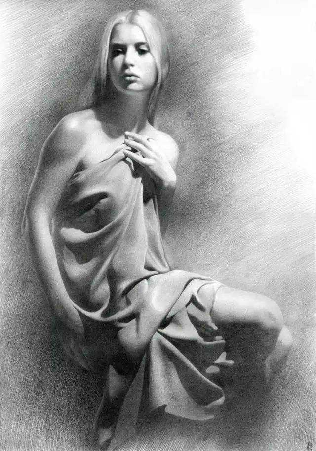 契尔诺夫的素描,首先征服观者的便是其笔下线条所蕴含的惊人表现力。他的笔触绝非简单的轮廓勾勒,而更像是一位敏锐的诗人,以炭笔或铅笔代替言语,在纸面上进行着精微而克制的抒情。每一根线条都仿佛被赋予了独立的生命——时而轻柔如羽毛拂过,编织出肌肤的温润与光影的微妙过渡;时而肯定而果决,刻画出骨骼的坚实结构与内在的力量支撑。这种对线条极致的控制力,使得他的画面摆脱了素描常被视作“习作”或“草稿”的局限,升华为一种完整、独立且充满尊严的艺术形式。在黑白灰的纯粹世界里,他通过线条的疏密、轻重与虚实,构建出丰富的层次与空间,让静止的画面产生了如呼吸般起伏的韵律感。