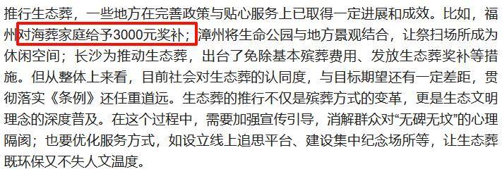 另外国家现在也开始鼓励用海葬、树葬等方式推动新的生态安葬,且部分地区为了响应国家号召,将会开启生态安葬的补贴,对于一些手头比较拮据,又突遭意外的家庭而言是非常好的消息。