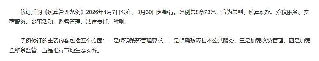 这些殡葬行业的新规定在哪些方面做了调整?新规定的施行对未来人们的生活又会带来哪些影响?