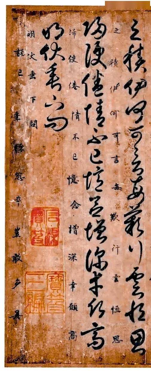 不过,此帖在流传上的脉络却是清晰可见的,帖上盖满了 “御府宝绘”“内殿珍玩”“明昌御览” 等鉴藏印,见证了它从金明昌内府、宋内府,到清代毕沅与乾嘉宣三朝内府的递藏历程,还被著录于《石渠宝笈・三编》,成为历代皇家与收藏家珍视的瑰宝。