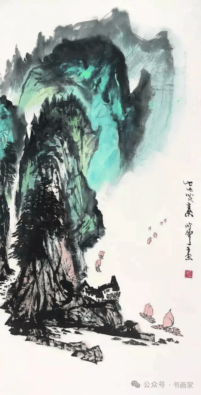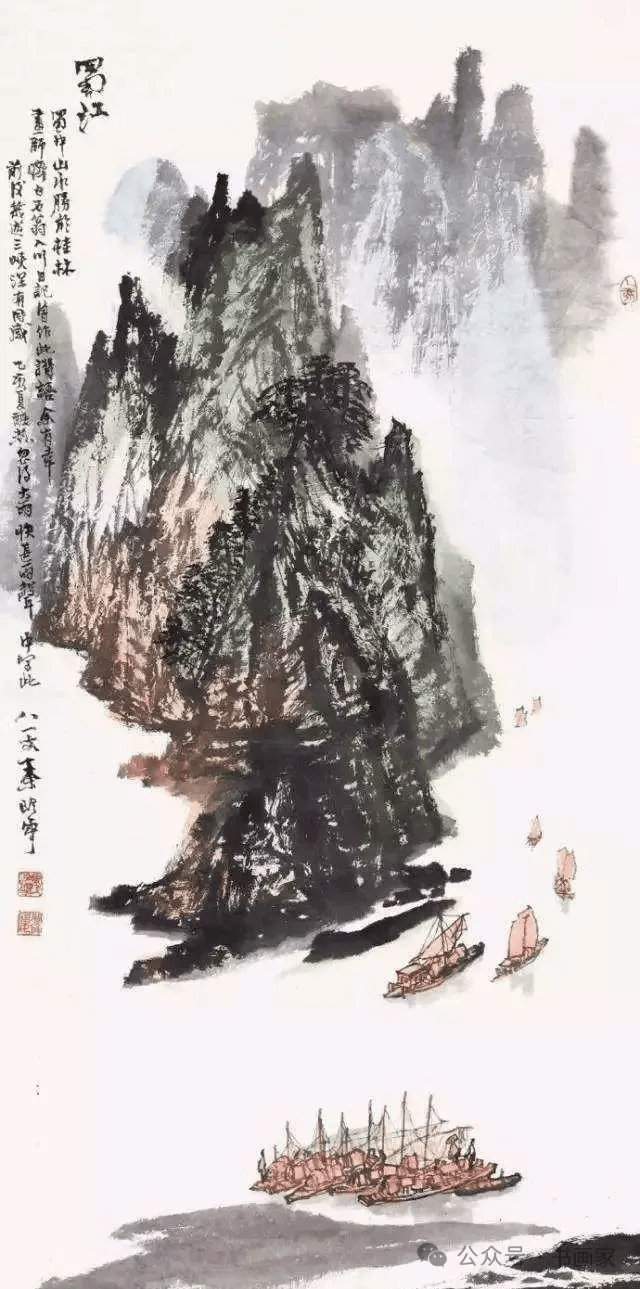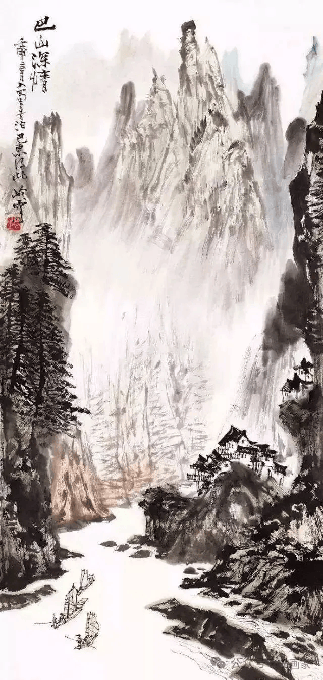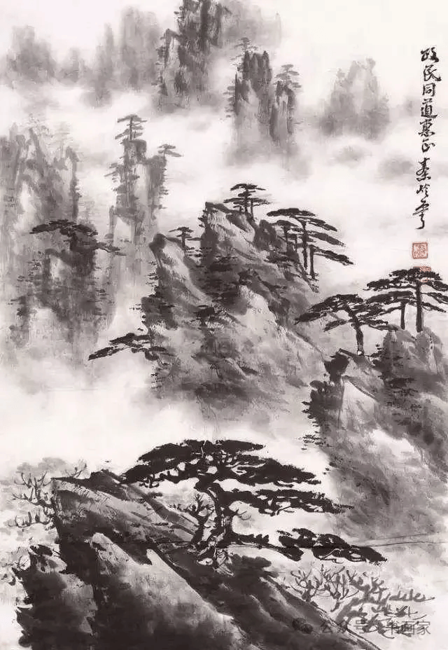 秦岭云作山水,胸含万壑,笔润千山,风格独具,既有小桥流水、竹篱茅舍的情致,亦有奇峰劲松、飞瀑行云的磅礴,观之,令人心情倍感舒畅!