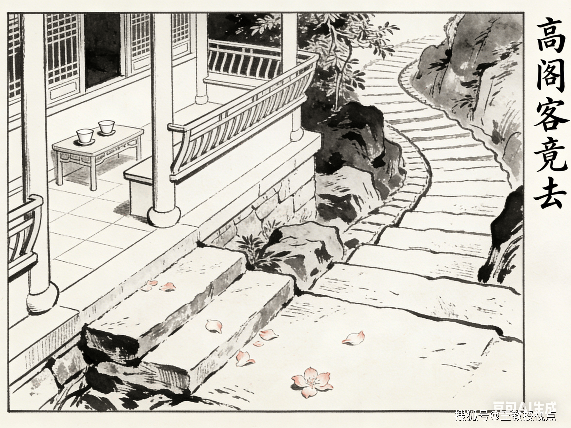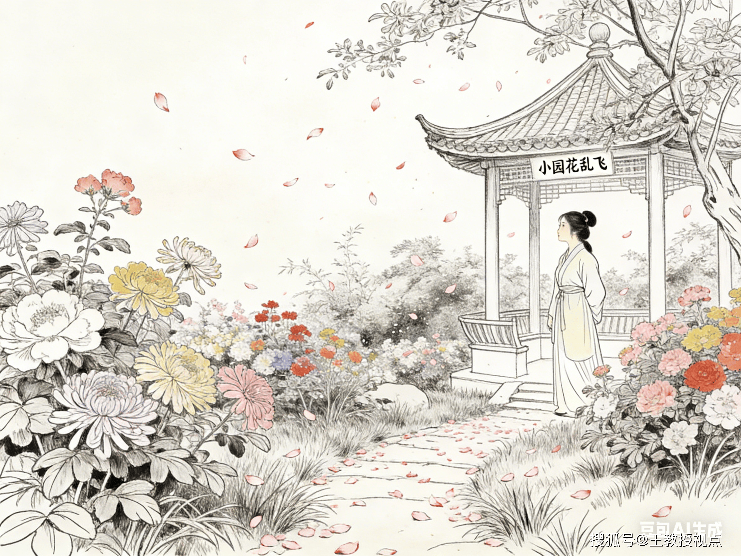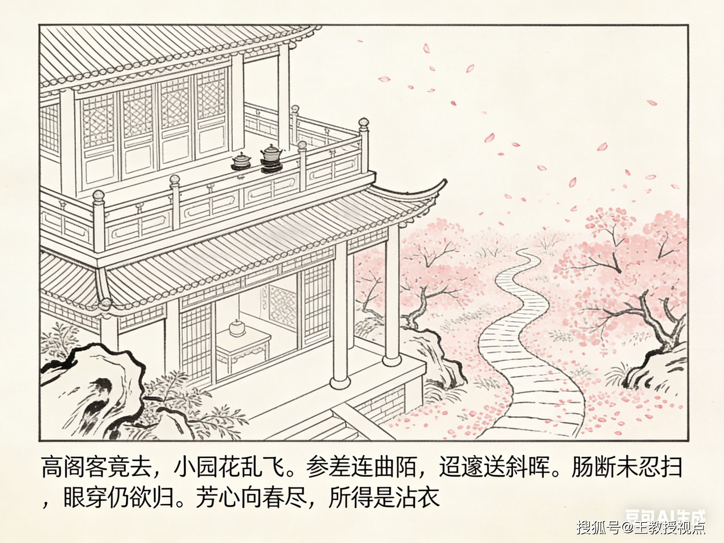 “高阁客竟去,小园花乱飞。”开篇两句,以极简笔触勾勒场景,叙事与写景并行,瞬间奠定全诗基调。“高阁”点明地点,居高临下的阁楼本是宴饮雅集之所,如今“客竟去”,一个“竟”字,藏尽意外与无奈。客人猝然离去,热闹戛然而止,留下的唯有空寂的阁楼与满园狼藉。“竟”字写客人离去之速,暗合诗人内心的失落——本盼友人相伴消解孤寂,却未料相聚短暂,孤寂更甚。