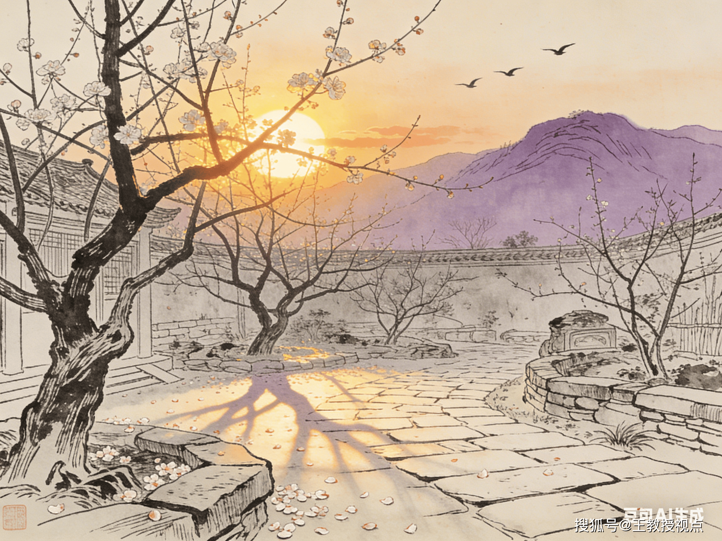 李商隐创作《落花》时,虽非垂暮之年,却因仕途坎坷、境遇困顿,内心早已布满沧桑。斜晖的出现,恰如诗人对自身命运的认知——人生如夕阳,即便曾有光辉,也终将走向落幕,而自己的理想与才情,也如落花般,在时光的流逝中逐渐凋零。斜晖是自然之景,是诗人心境的投射,为全诗增添了浓厚的宿命感,让悲伤更显深沉。