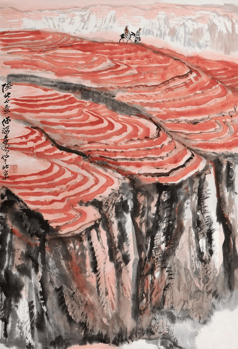在长安画派中,他与石鲁、赵望云成为三足鼎立,缺一不可的领军人物。”何纪争、曹湘琴,更高度评价何氏的绘画是“世纪末的丰碑”。何海霞是全能型画家,无论水墨、青绿、泼彩或金碧均能,无论从思想境界,审美情趣或绘画语言上都体现了画家的胆略与力量、成就与辉煌。在他的作品里,我们常常会感叹扎实的传统功力与现实生活的结合,以及色彩与水墨的完美融合。