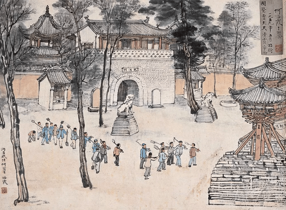 何海霞幼时即喜爱书画,青年时期曾参加中国画学研究会,1924年拜韩公典为师,1934年拜张大千为师,随其游历山东、四川。何海霞随张大千习画期间,饱览了中国古代名画并大量临摹了宋、元、明、清时期的绘画真迹;1936年,他与齐白石、张大千、于非闇在长春、大连等地举办作品联展。