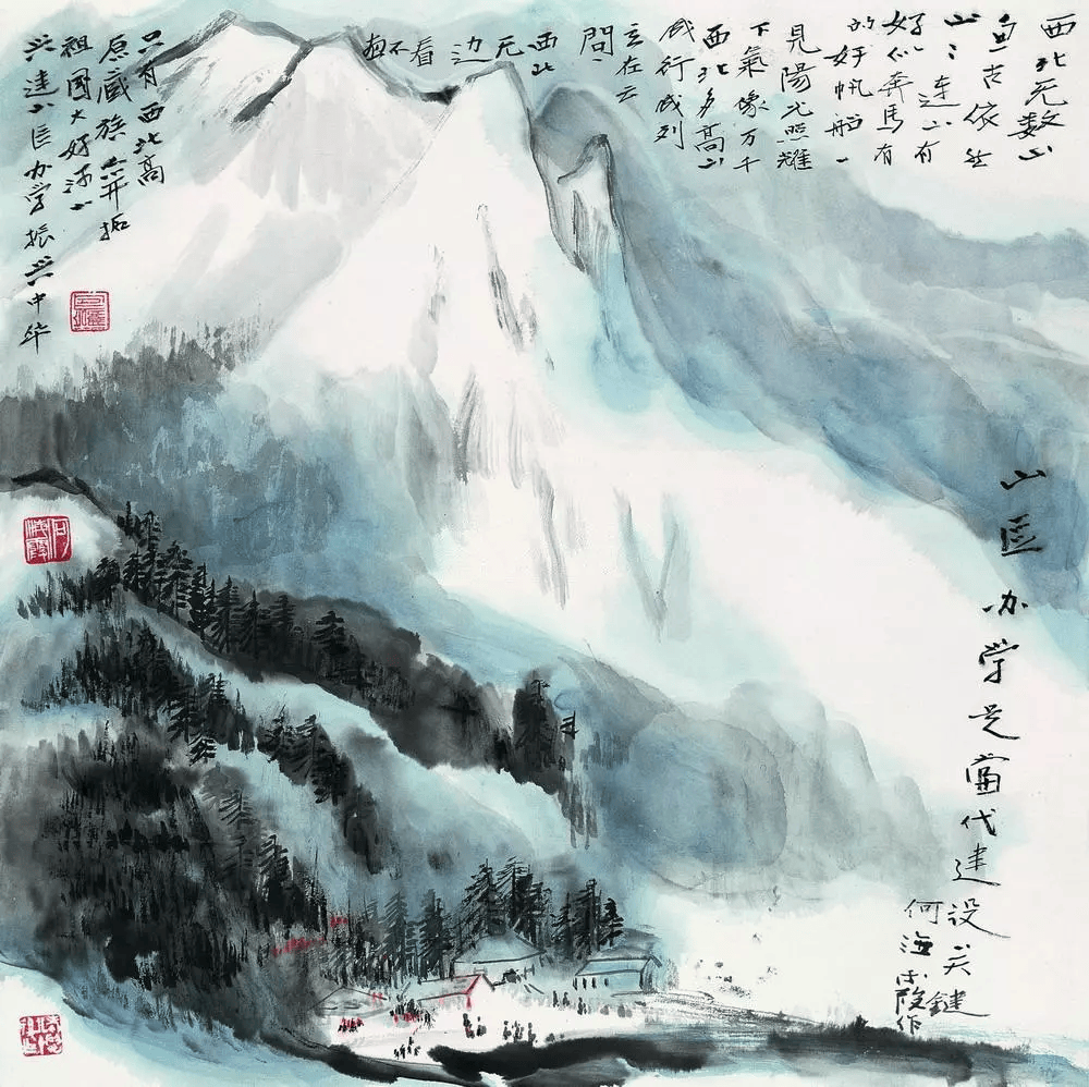 50年代初,何海霞辗转来到古都西安,与石鲁、赵望云一同进行山水画创新,从西北风光中获得了创作契机,三人共创了“长安画派”,在当时及至以后的国画界产生了很大的影响。当代名家黄永玉先生称其为“鬼手何海霞”。著名画家周韶华称何氏是“世纪艺术大匠何海霞”。以及当代著名作家贾平凹认为“真正的中国山水画,何海霞可能是最后的一个大画家”。