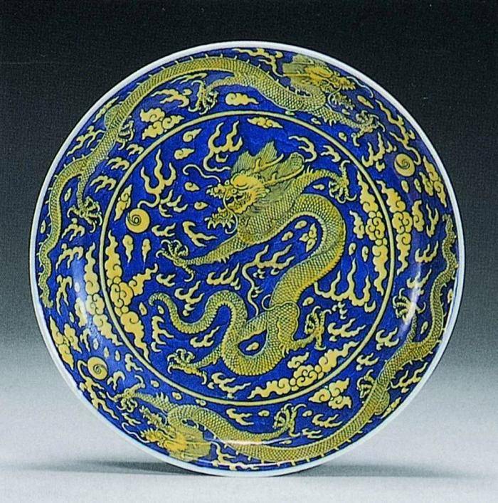黄与“皇”谐音,明清两代一直是皇家专用的色彩,黄色的瓷器也同样不例外。