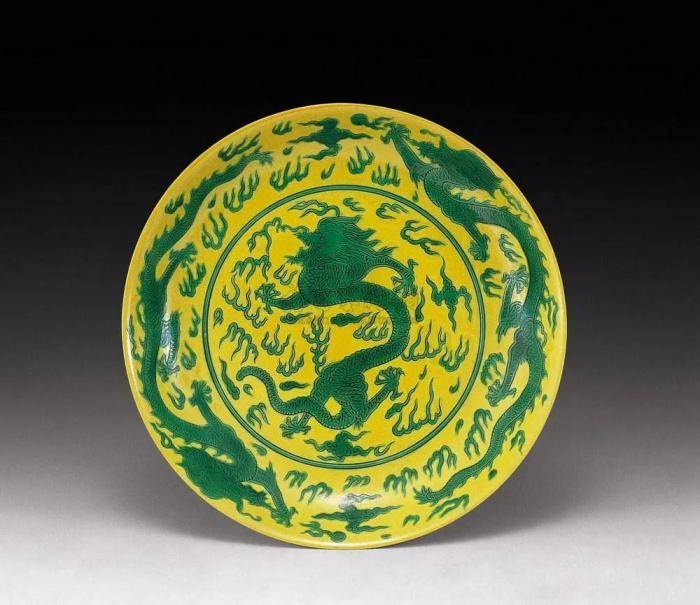 清代《国朝宫史》记载,通体全黄釉器除皇帝外,只有皇太后和皇后方可享用;皇贵妃也只能使用内白釉外黄釉器;贵妃、妃使用黄地绿龙;嫔使用蓝地黄龙……其他的贵人、常在、答应,想要享用黄釉瓷器,还得努力晋升位分才行。