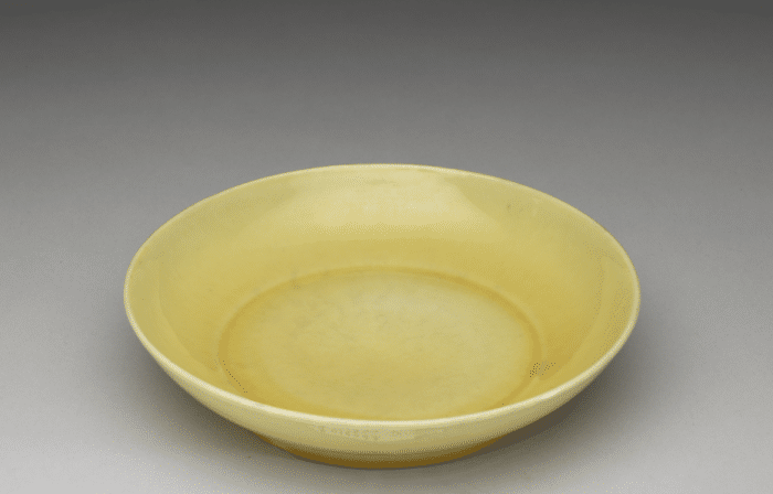 黄釉瓷中,又以明代宣德时期创烧出娇黄釉最为著名,娇黄釉在弘治时期被发扬光大。