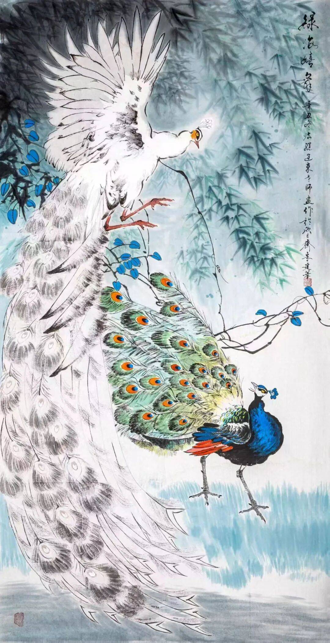 近日,记者从相关部门获悉,中国书法家协会会员、一级美术师朱建华的国画作品《起舞弄清影》(尺寸:138cm×69cm)、书法作品王维《山居秋暝》诗(尺寸:138cm×50cm)被人民大会堂管理局收藏。
