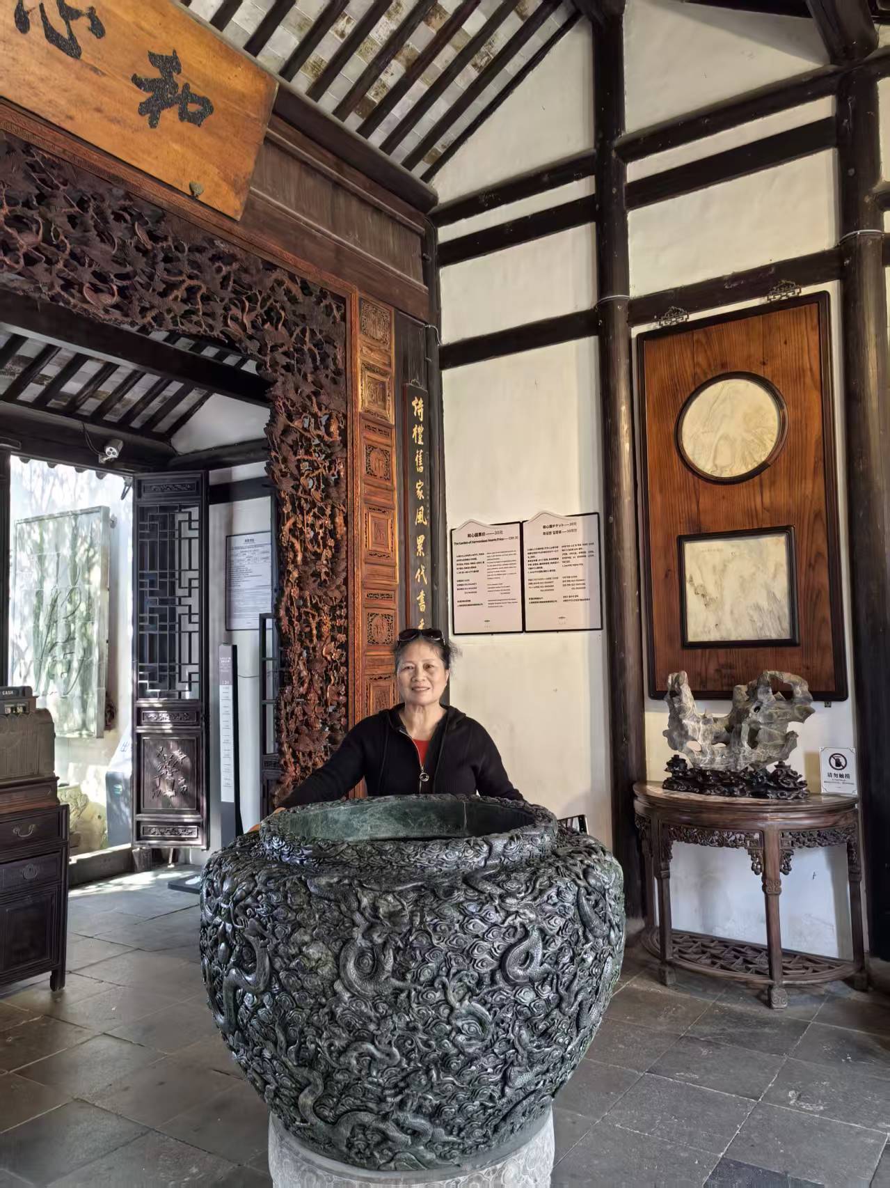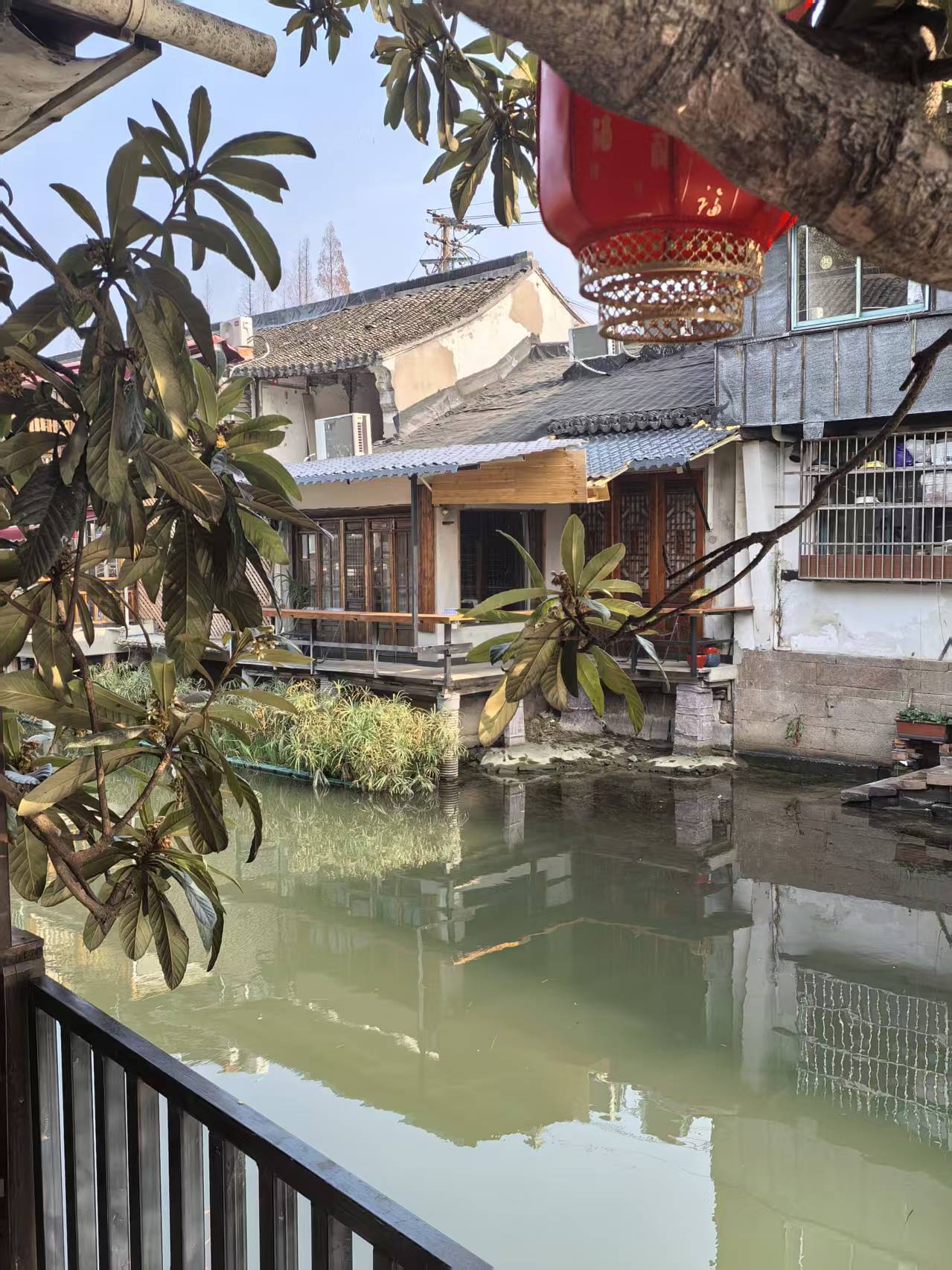 离开东井街,过泰安桥,向西便是西井街。这条街要清静许多,沿河的老宅,粉墙黛瓦,倒映在水中,像一幅淡墨的画。行至镇西,便望见了课植园那气派的门楼。因时间紧迫,我未能入园深处探寻,只在入口处驻足凝望。透过那厚重的门扉,依稀可见园内布局的错落有致,厅堂轩敞,假山嶙峋,那份“课读之余,以植桑种稻”的耕读雅意,即便只窥一斑,也足以想见其当年的风雅。紧邻的和心园则显得更为精巧玲珑,虽未踏入,但透过花窗望去,园内亭台楼阁的倒影在水中轻轻摇曳,那份闹中取静的禅意,已让人心生向往。