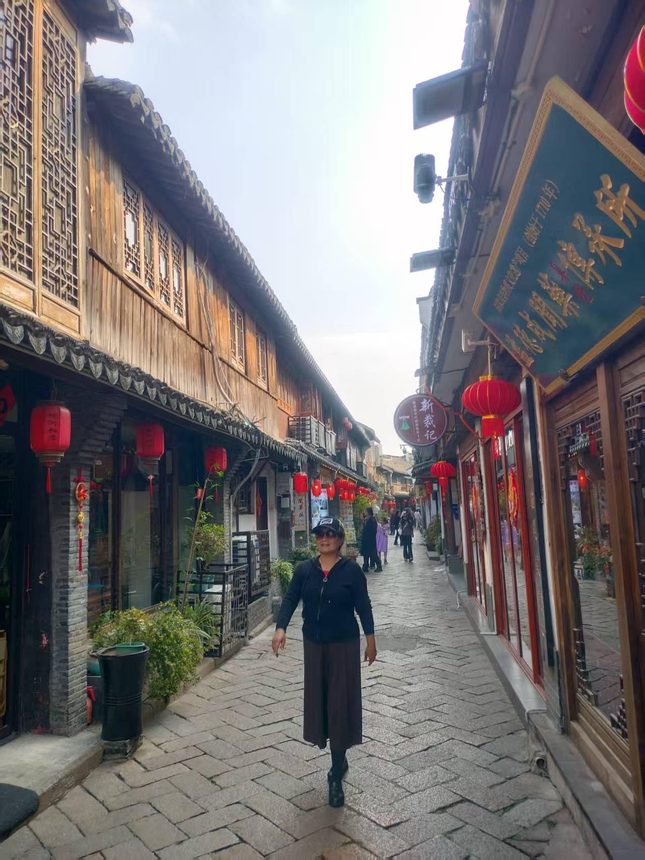 站在桥顶,古镇尽收眼底。下了桥,便是那条号称“一线天”的东井街。街道窄窄的,两旁的屋檐几乎要碰在一起,抬头望去,只剩一线天空。石板路被岁月磨得锃亮,两旁的老店鳞次栉比,店招幌子,古意盎然。