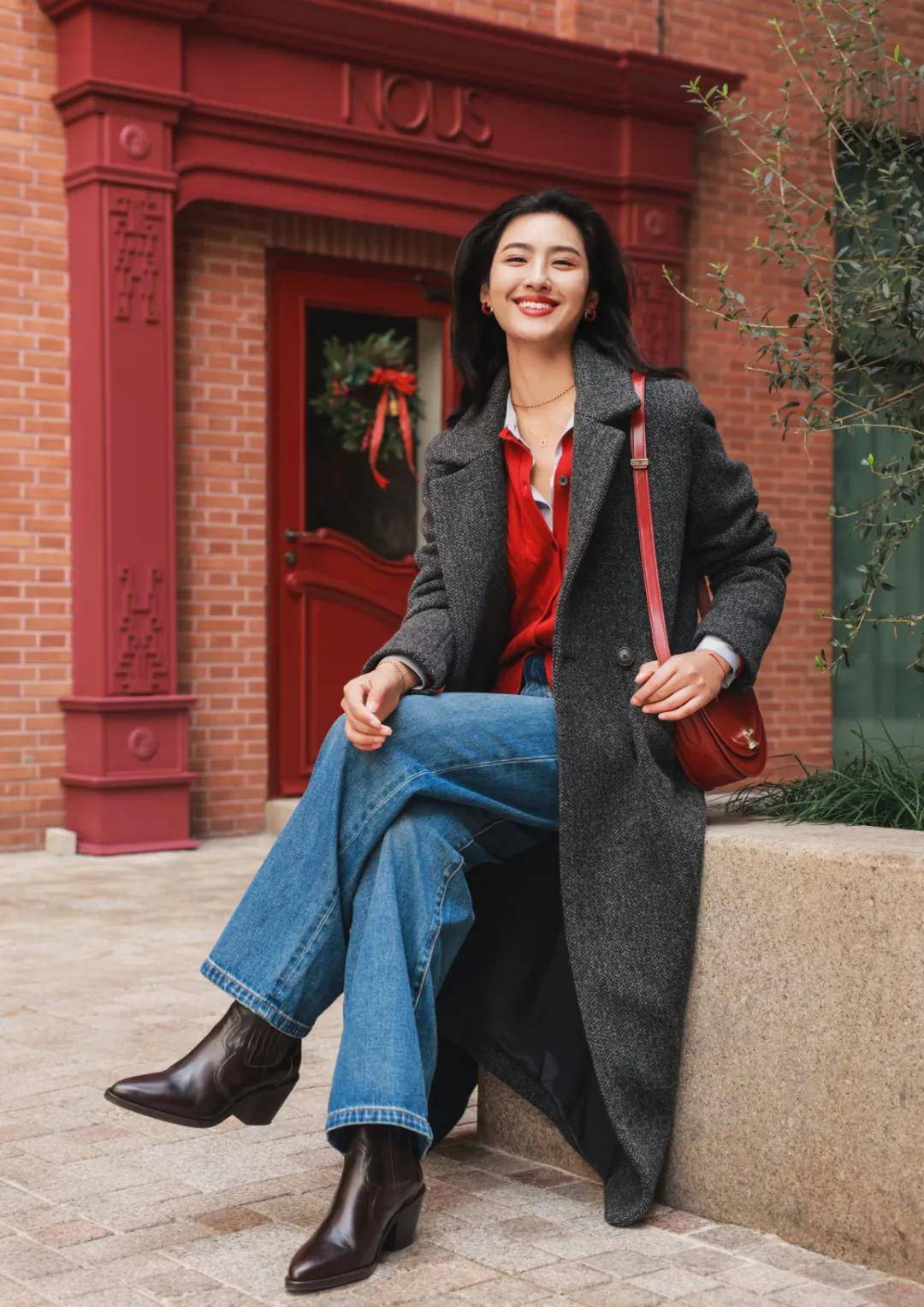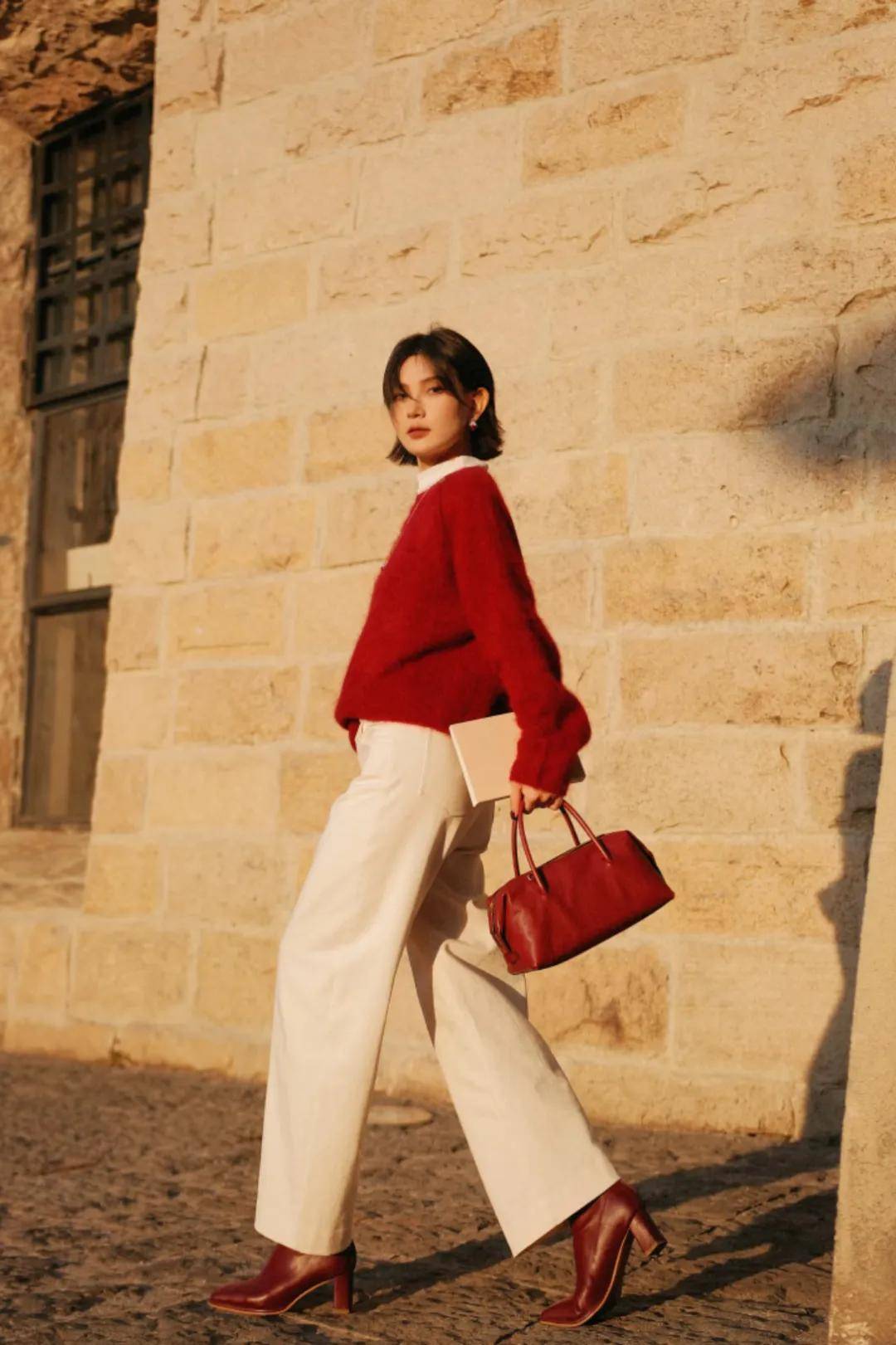 过年少不了穿红色单品,搭配白色,既充满了节日的喜庆氛围,同时让整个人显得很亮眼。