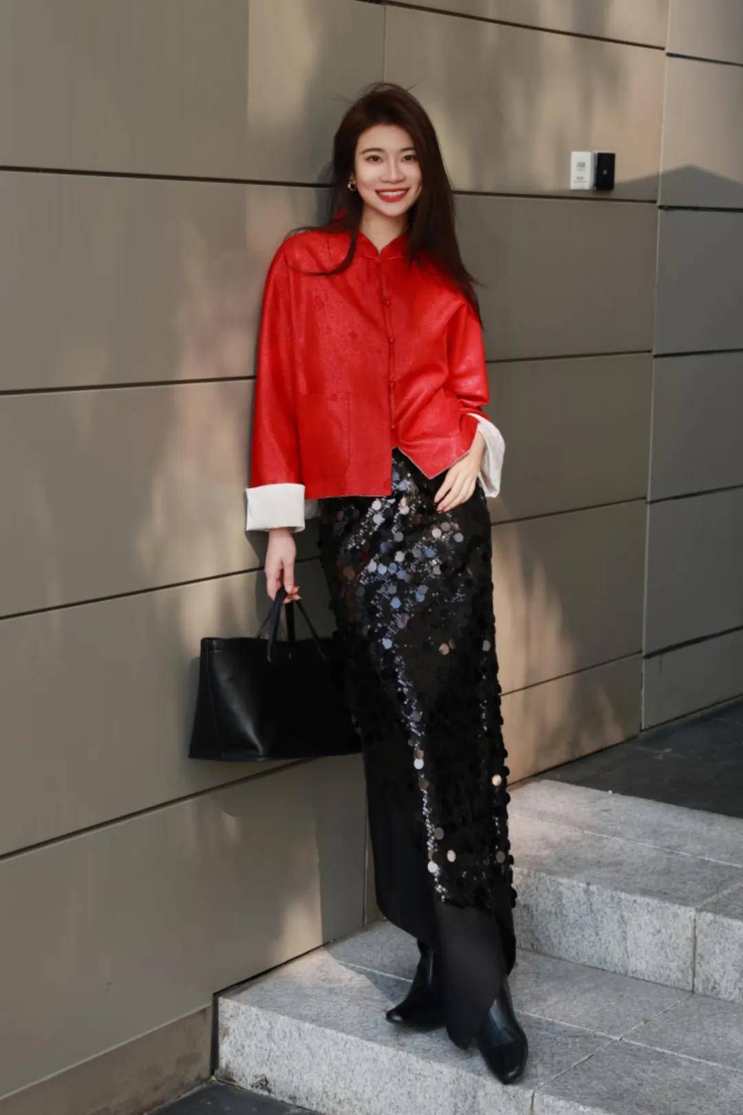 想要打造出既时髦又带有成熟韵味的小姨风穿搭,红色与黑色能够瞬间提升整体造型的活力感和吸睛度。