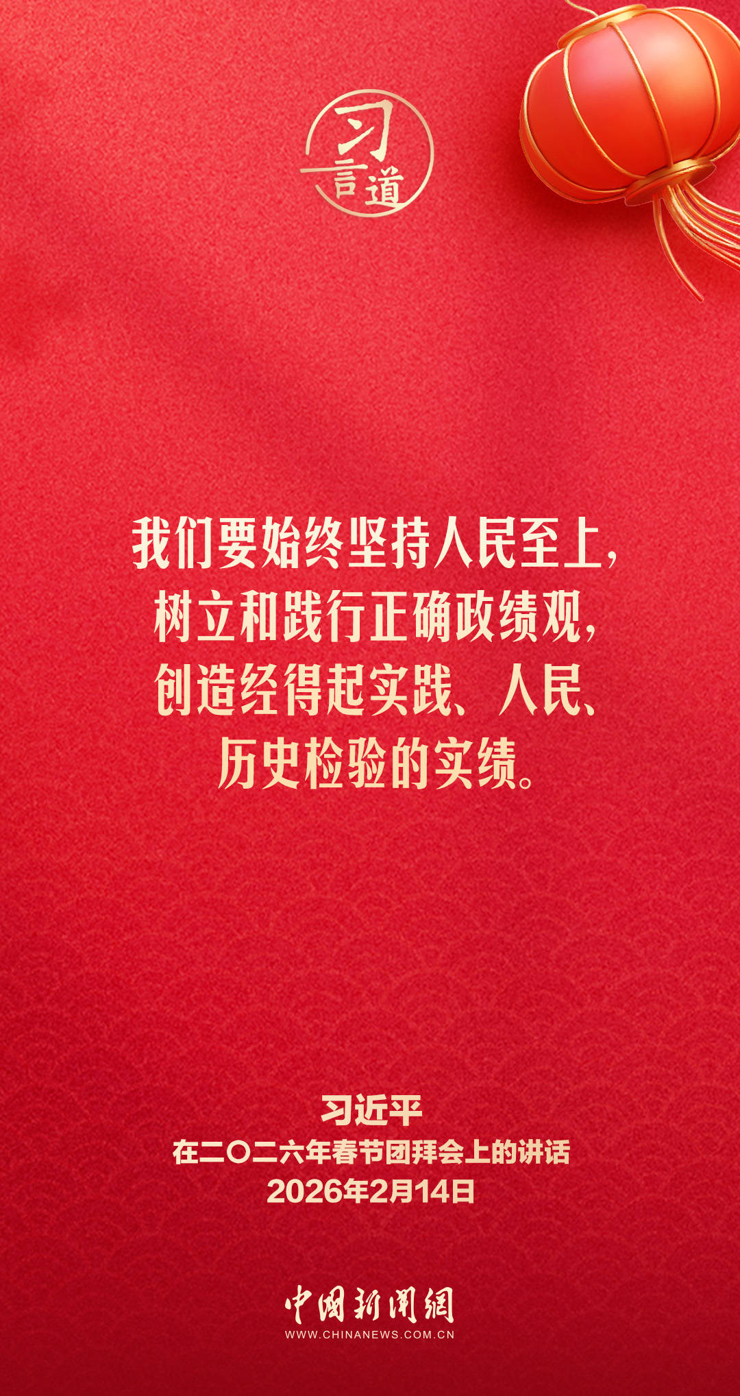 2月14日,中共中央、国务院在人民大会堂举行2026年春节团拜会。中共中央总书记、国家主席、中央军委主席习近平发表讲话,代表党中央和国务院,向全国各族人民,向香港特别行政区同胞、澳门特别行政区同胞、台湾同胞和海外侨胞拜年。他指出——