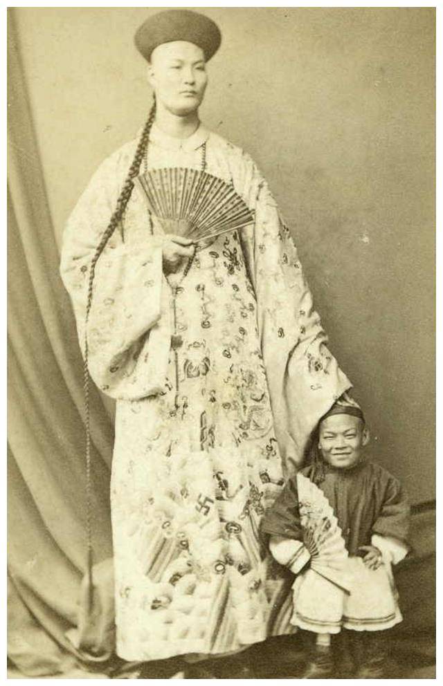 这幅照片拍摄于晚清时期,照片中的人物是浙江省的一位富商的妻子和她的奴婢。夫妻俩的长相差异显而易见,富商妻子的美丽与奴婢的朴素形成了鲜明的对比。